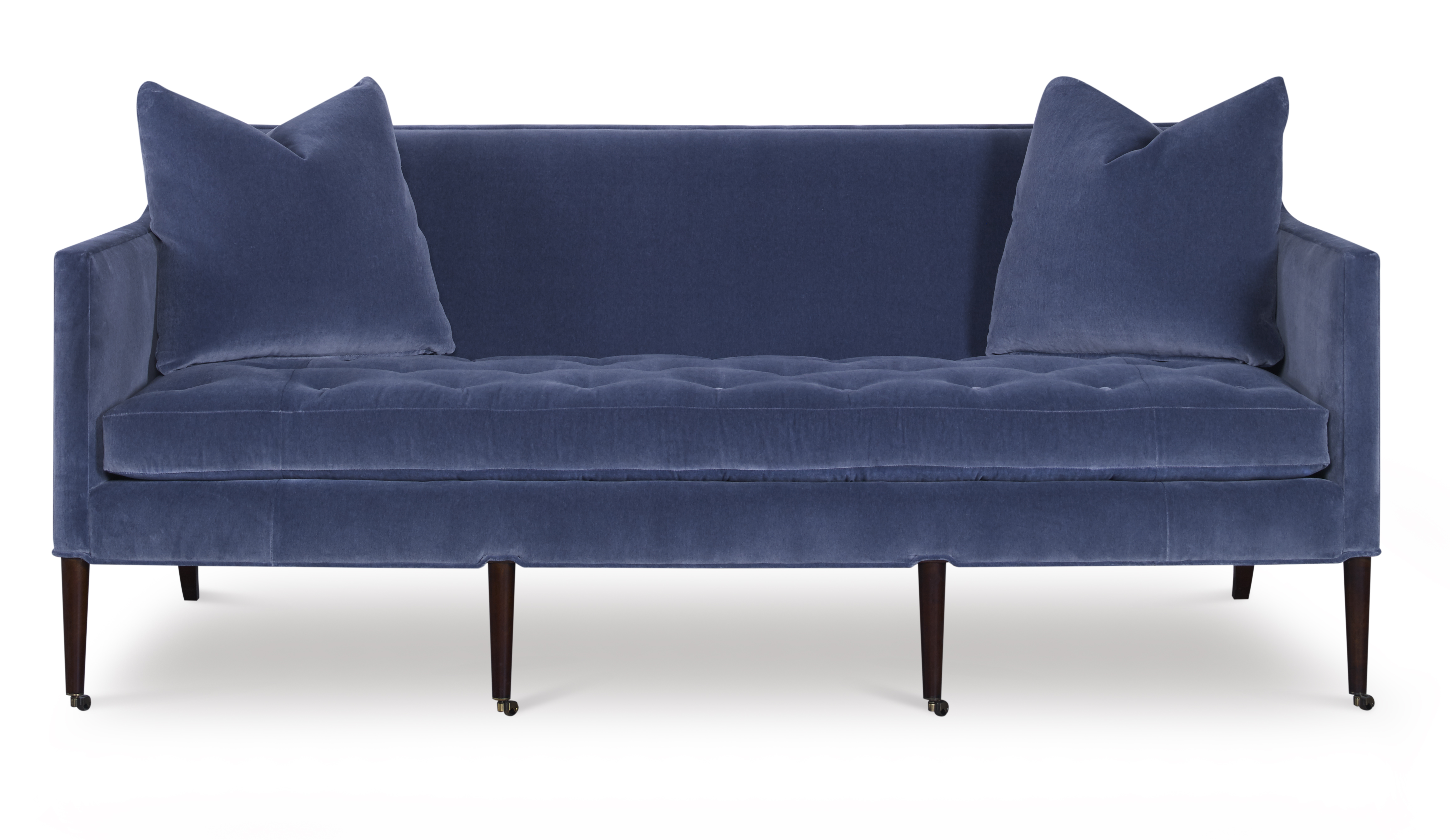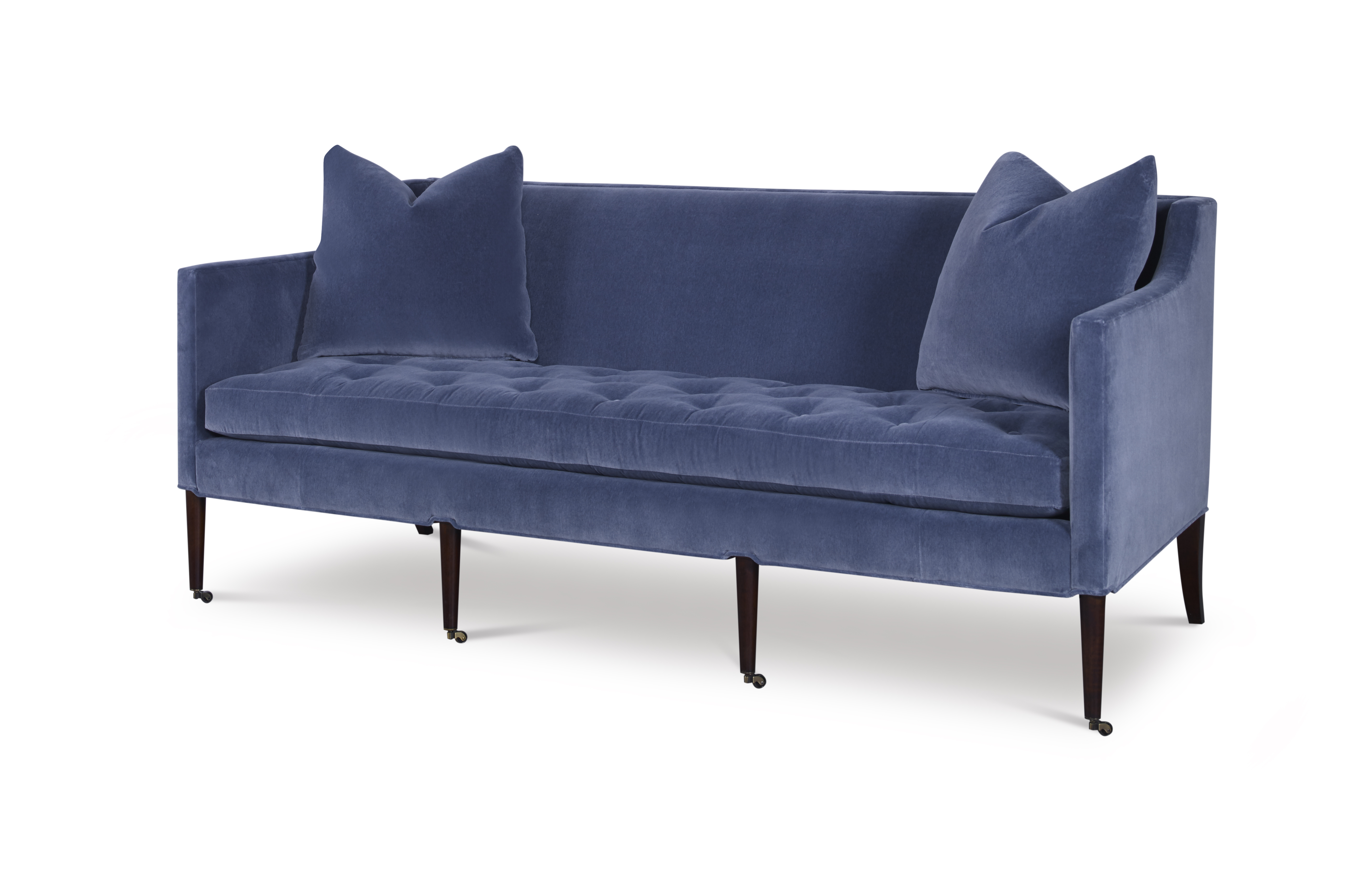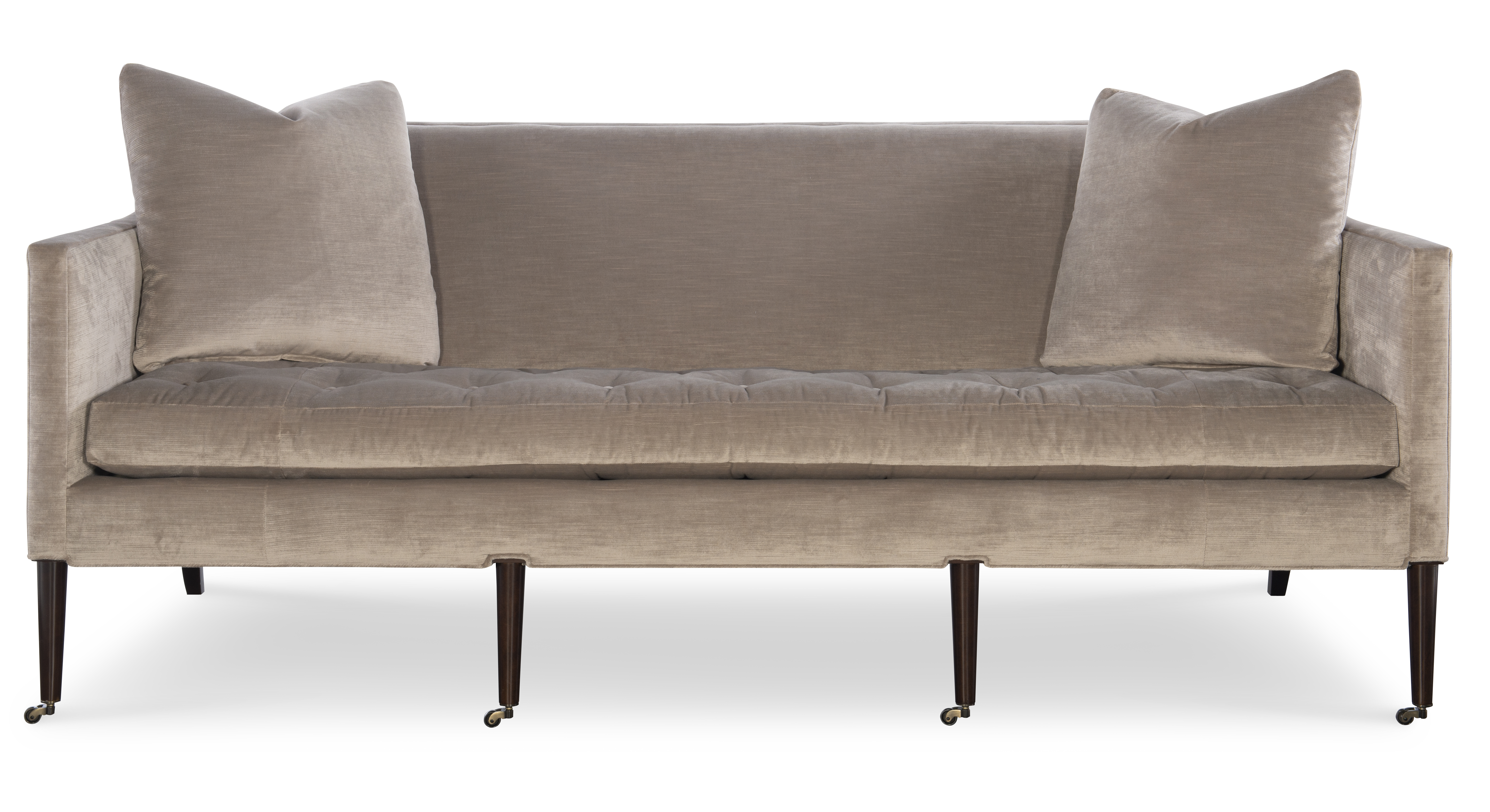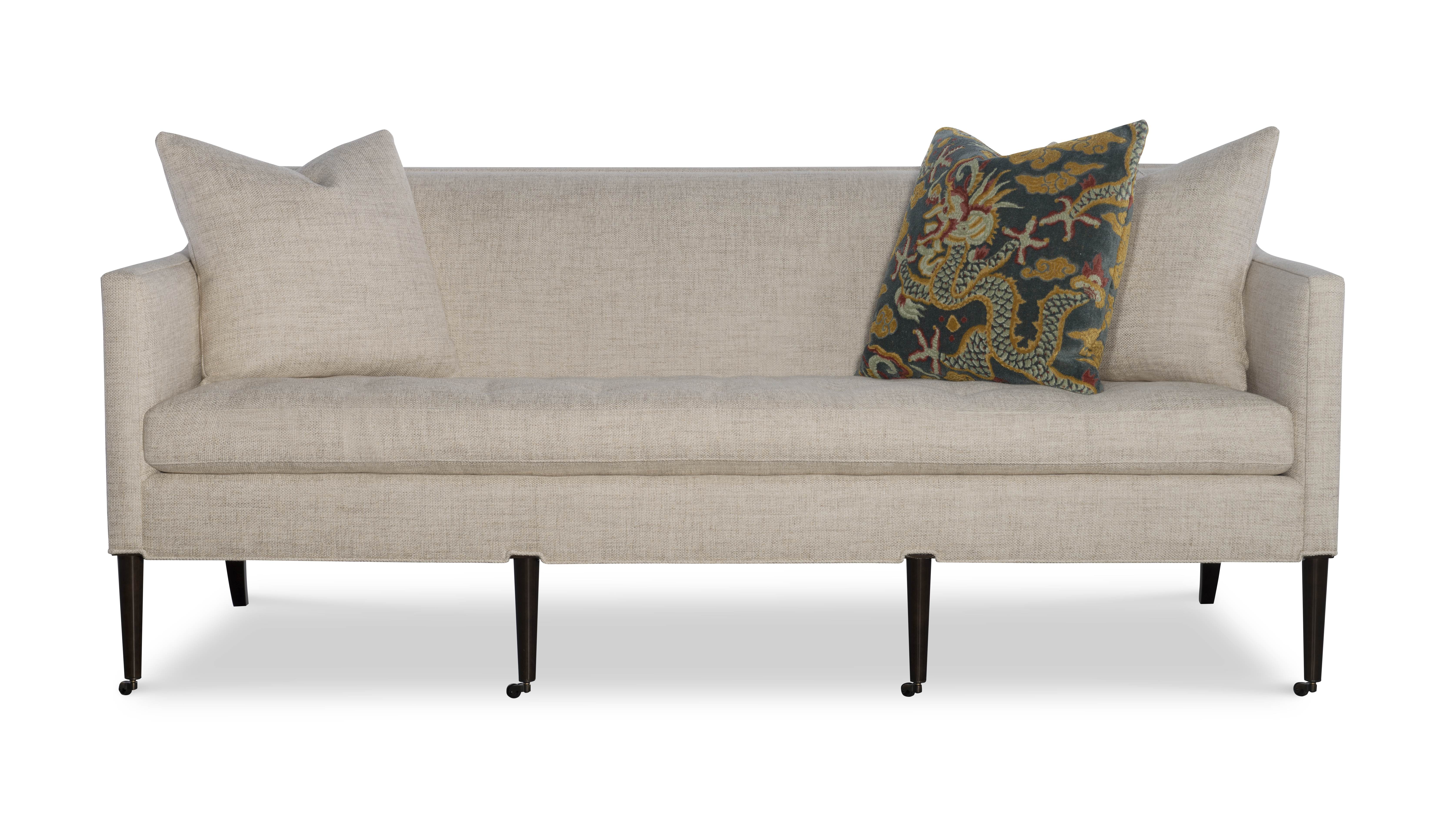 (View As Shown Info) Some color variation in photos of our furniture finishes and fabrics is possible due to the lighting and different color resolution on computer monitors. 1430-80 - Collett Sofa Highland House Uph W: 80 in D: 35.50 in H: 34 in Add Item to Wishlist Product Details Material Maple Solids Back Type Tight Seat Type Loose Seat Fill Ultra Down Notes Topstitch Standard on Cushions. Standard with Antique Brass Casters and OPT Brushed Nickel Casters Dimensions Fabrics & Finishes Fabric Search Finish List Dealer Locator