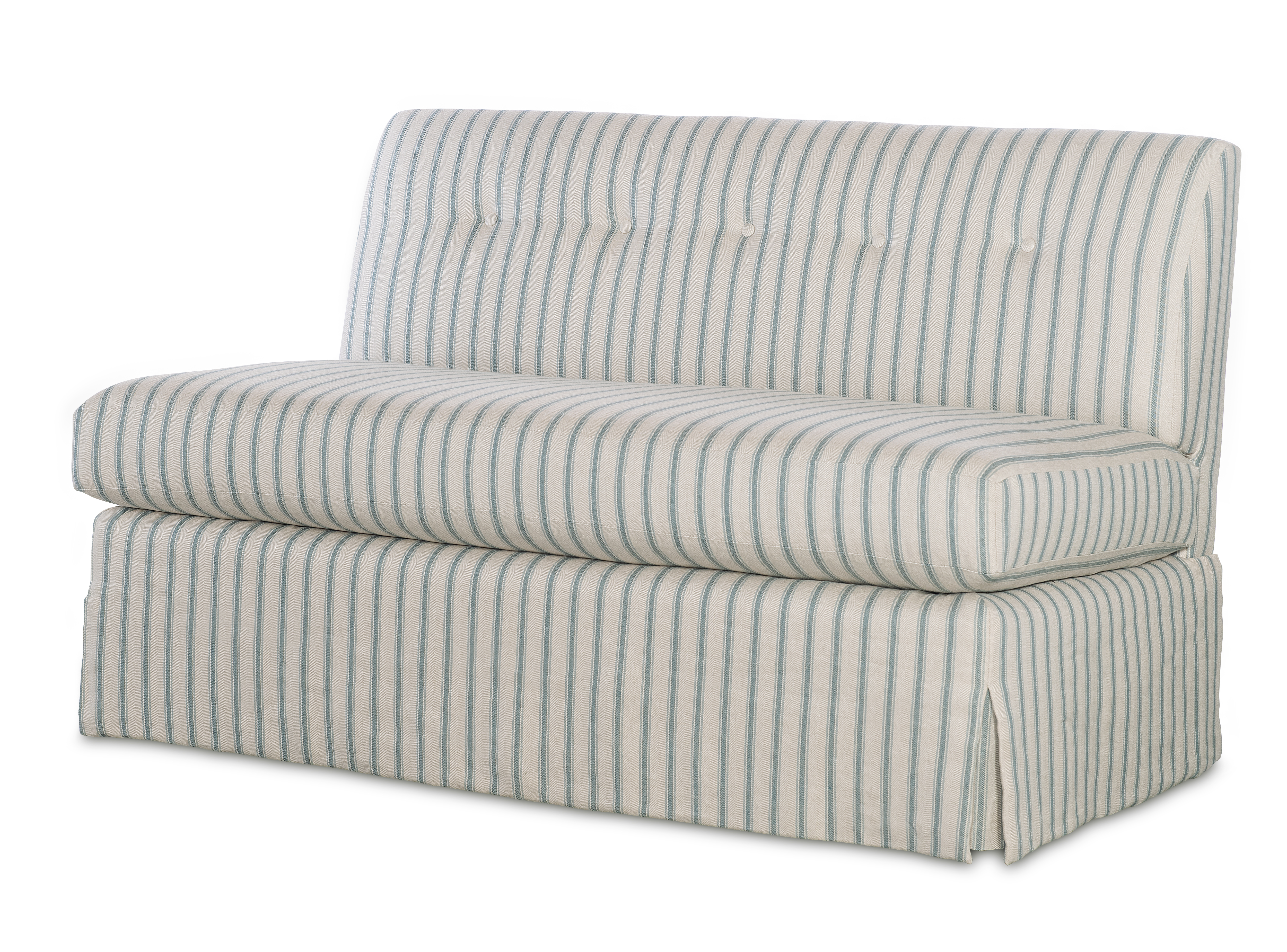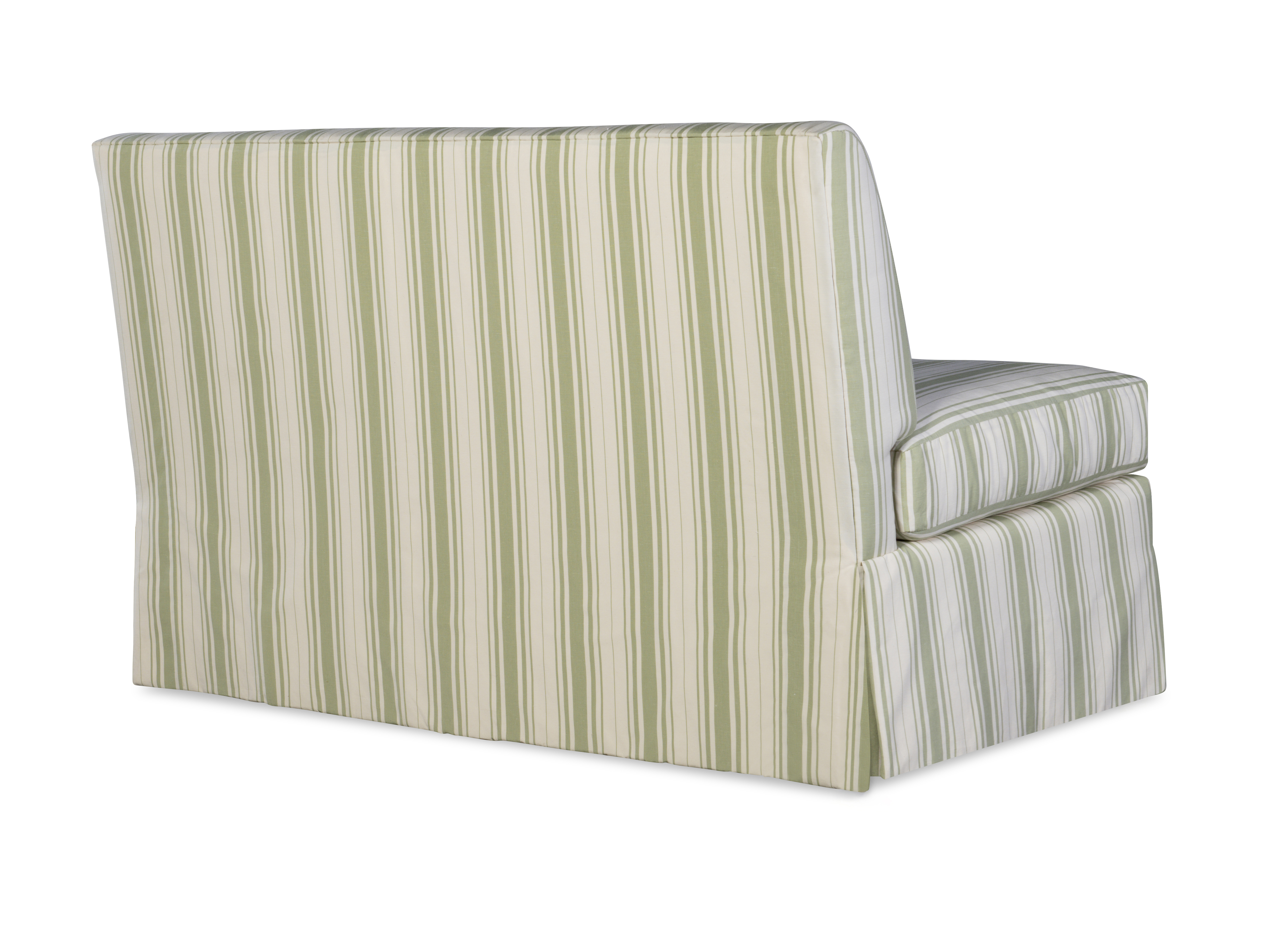 (View As Shown Info) Some color variation in photos of our furniture finishes and fabrics is possible due to the lighting and different color resolution on computer monitors. 1500-54 - Eton Skirted Settee Highland House Uph W: 54 in D: 31 in H: 33 in Add Item to Wishlist Product Details Back Type Tight Seat Type Loose Seat Fill Ultra Down Notes Standard with no welt. Nail Trim no available. Dimensions Fabrics Fabric Search Dealer Locator