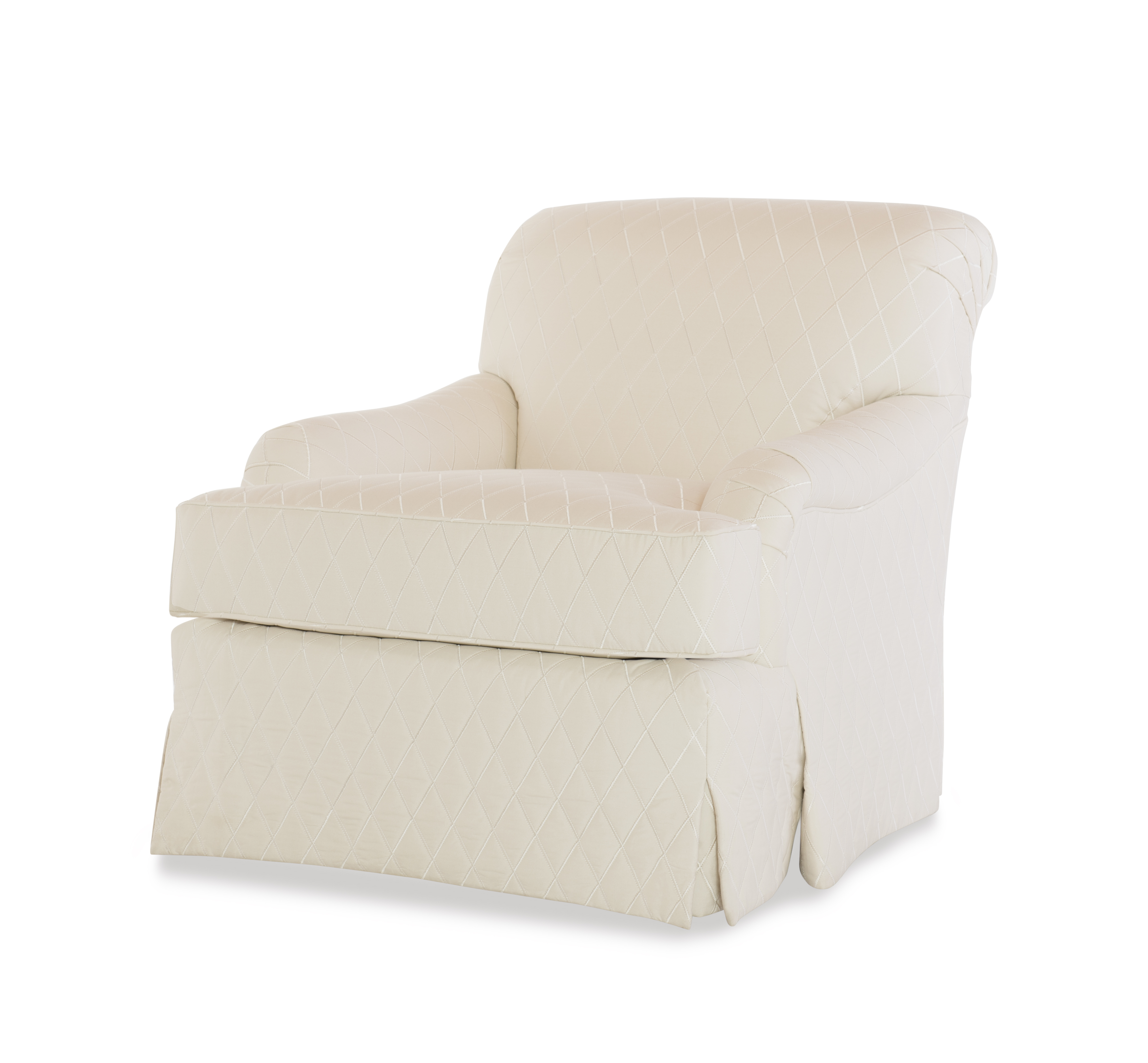 (View As Shown Info) Some color variation in photos of our furniture finishes and fabrics is possible due to the lighting and different color resolution on computer monitors. 202SW - Ashley Skirted Swivel Chair W: 32 in D: 38 in H: 33 in Add Item to Wishlist Product Details Back Type Tight Seat Type Loose Seat Fill Ultra Down Certifications Notes Standard with Micro Welt on Cushion and Out Arms. Dimensions Fabrics Fabric Search Other Finishes 202 Ashley Skirted Chair Dealer Locator