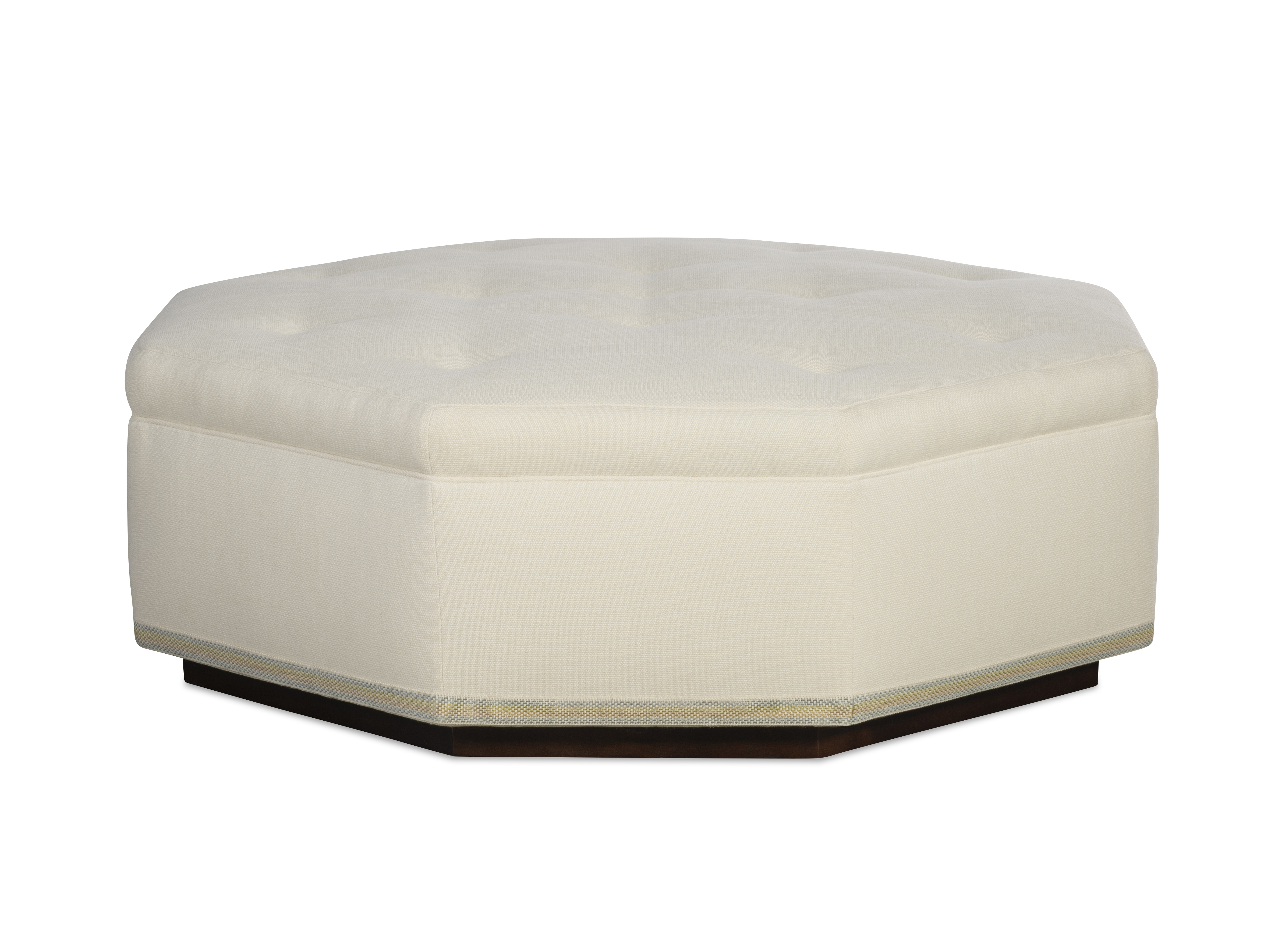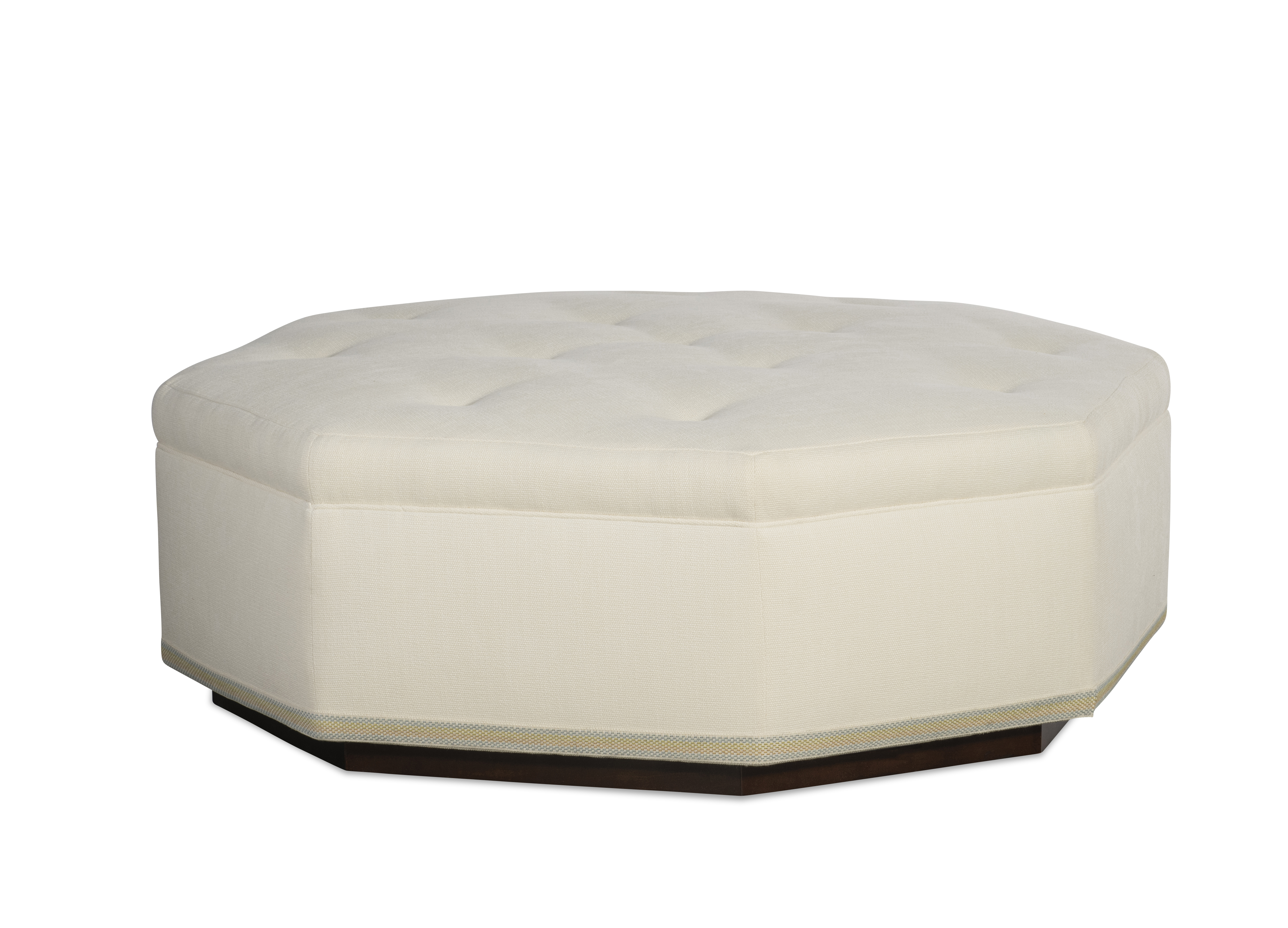 (View As Shown Info) Some color variation in photos of our furniture finishes and fabrics is possible due to the lighting and different color resolution on computer monitors. 2802-51 - Dominique Wood Base Cocktail Ottoman Highland House Uph W: 51 in D: 51 in H: 17 in Add Item to Wishlist Product Details Material Maple Solids Seat Type Tight Notes Standard with Micro Welt on top of border only. Nail Trim available on Base. Maple Wood Base Dimensions Fabrics & Finishes Fabric Search Finish List Dealer Locator