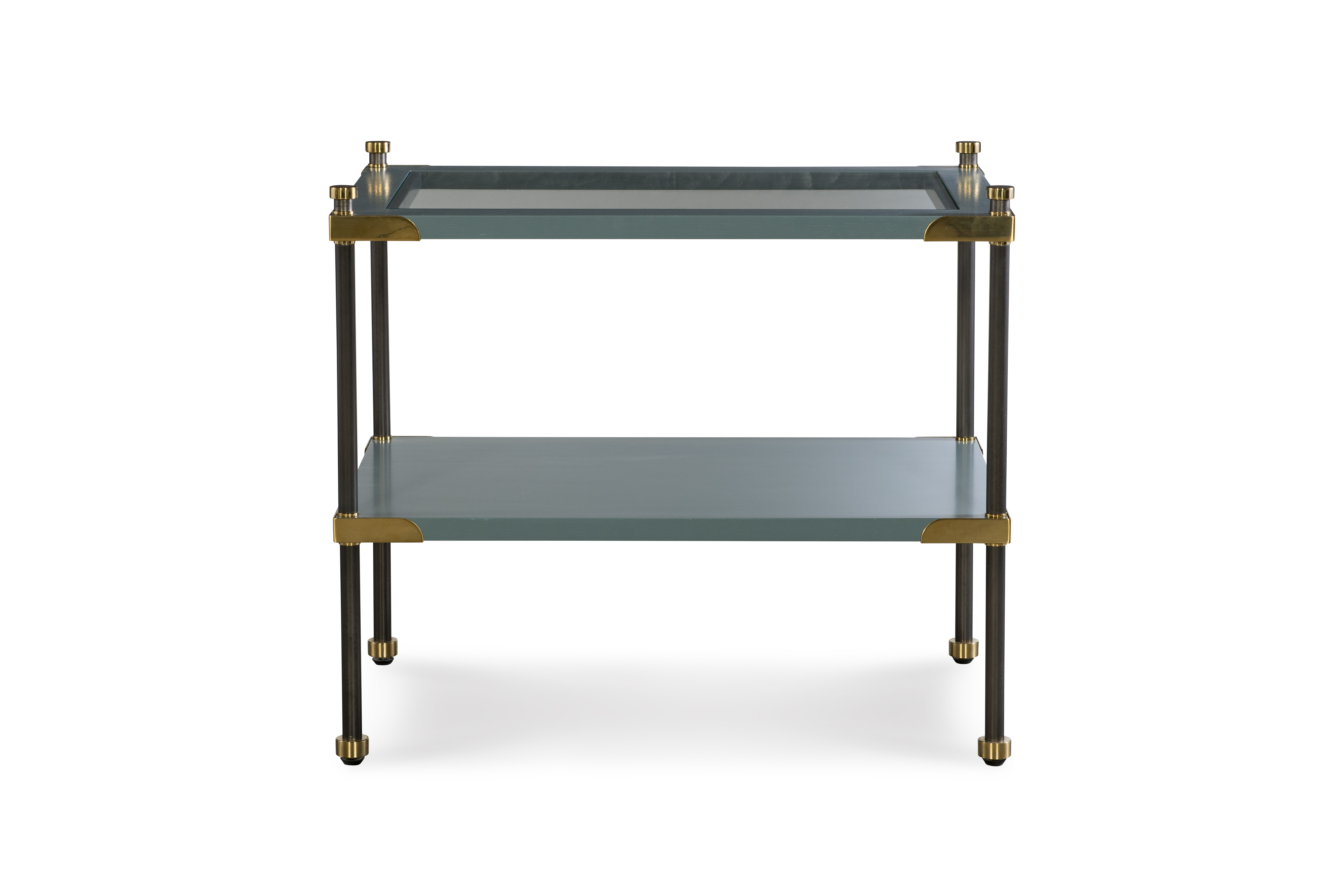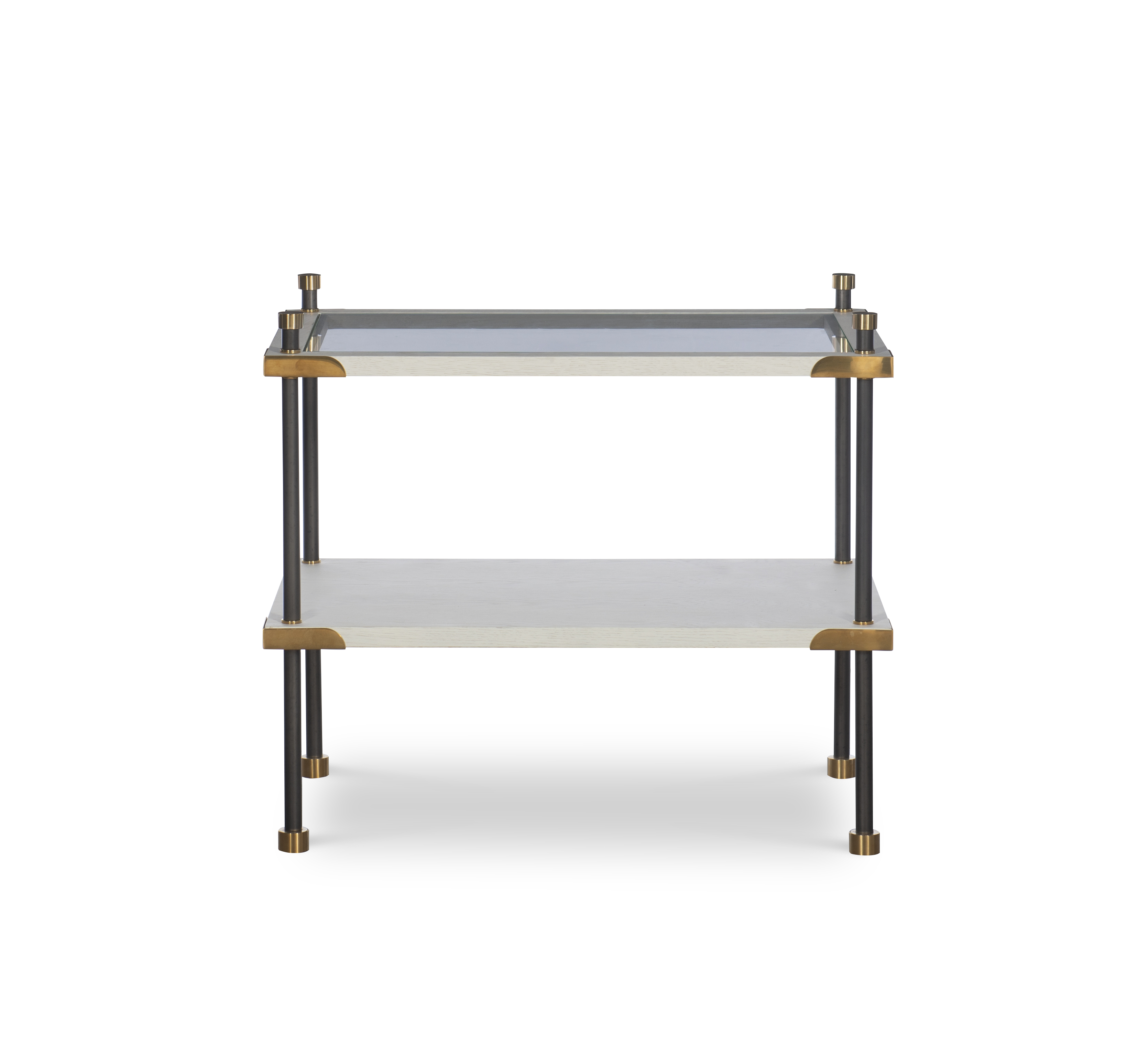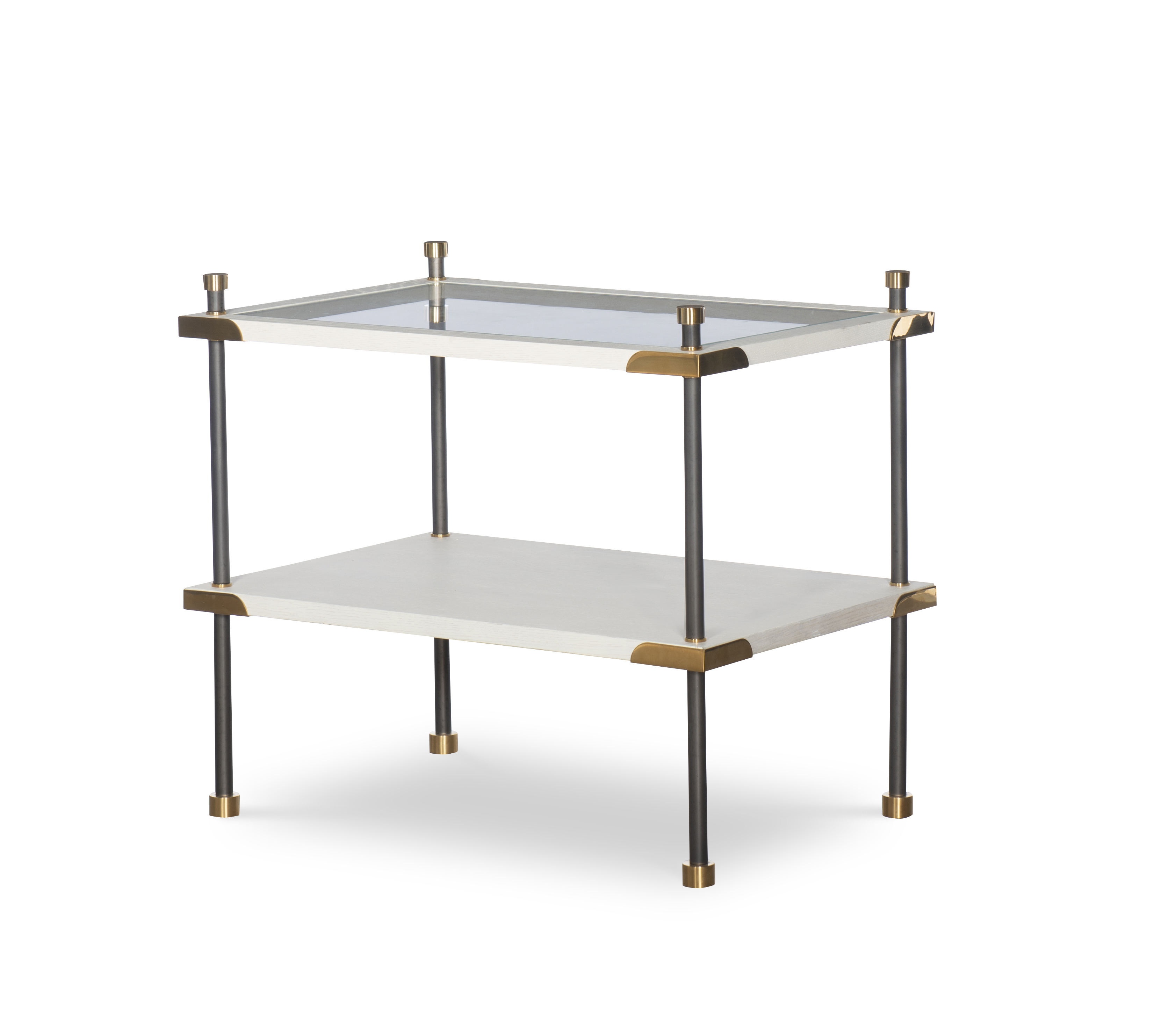 (View As Shown Info) Some color variation in photos of our furniture finishes and fabrics is possible due to the lighting and different color resolution on computer monitors. HH19-510 - Benson Side Table Highland House Wood W: 30 in D: 20 in H: 25.88 in This series, including the etagere, side table, and coffee table, was inspired by vintage Maison Jansen and Josef Frank pieces that we've admired over the years. Each piece is versatile and works well in both modern or traditional interiors. Featuring antique brass hardware details, a top glass shelf framed in oak, and an oak shelf below. Add Item to Wishlist Product Details Material Stainless Steel, Oak Veneers Notes Antique Brass Hardware. Glass Top and Wood Shelves. Dimensions Finishes Finish List Matching Pieces HH19-508-AC Benson Etagere-Alabaster Cerused Finish HH19-508-BC Benson Etagere-Blonde Cerused Finish HH19-508-PL Benson Etagere - Pearl Finish HH19-508S Benson Console HH19-512C Benson Cocktail Table Dealer Locator