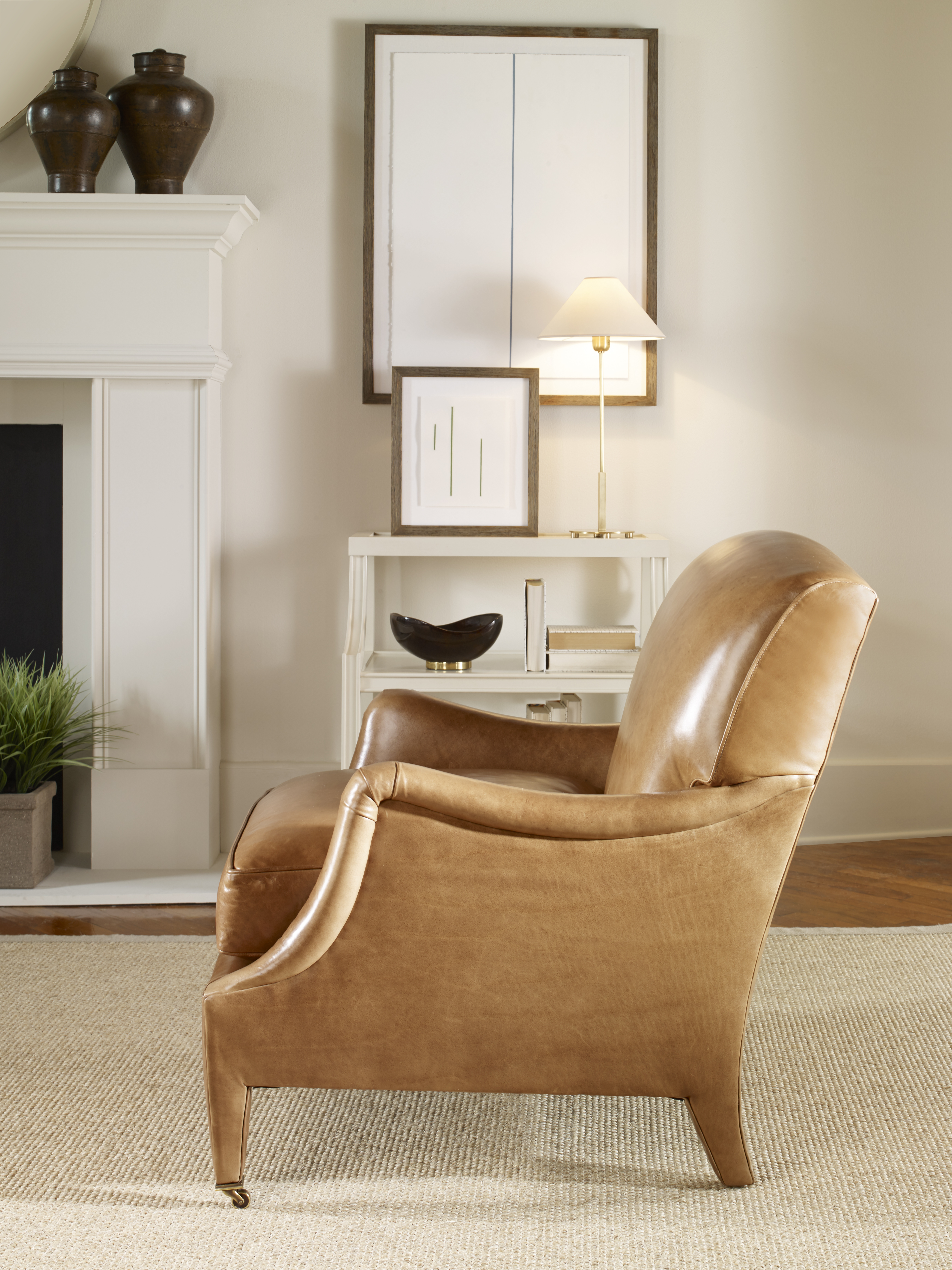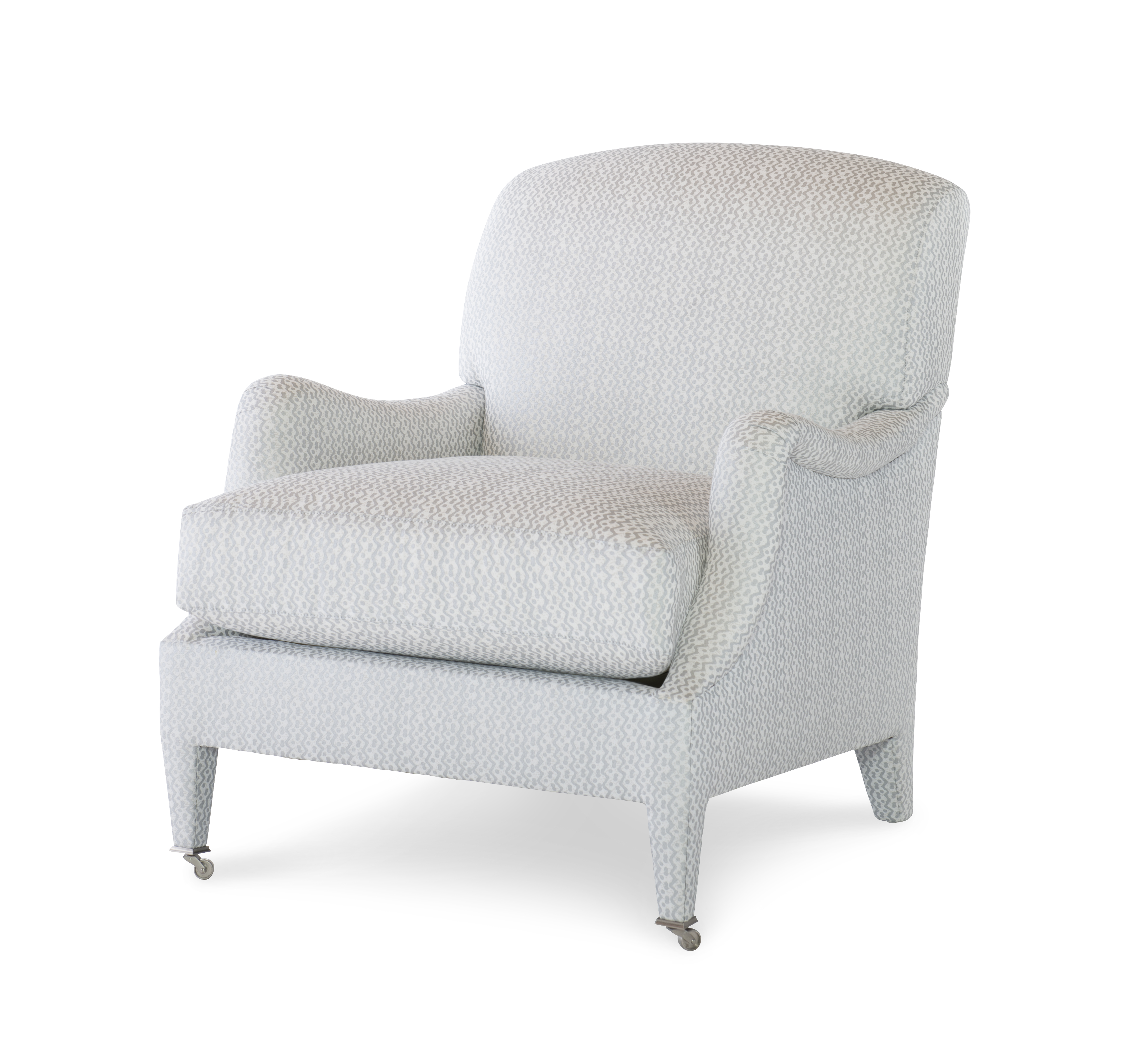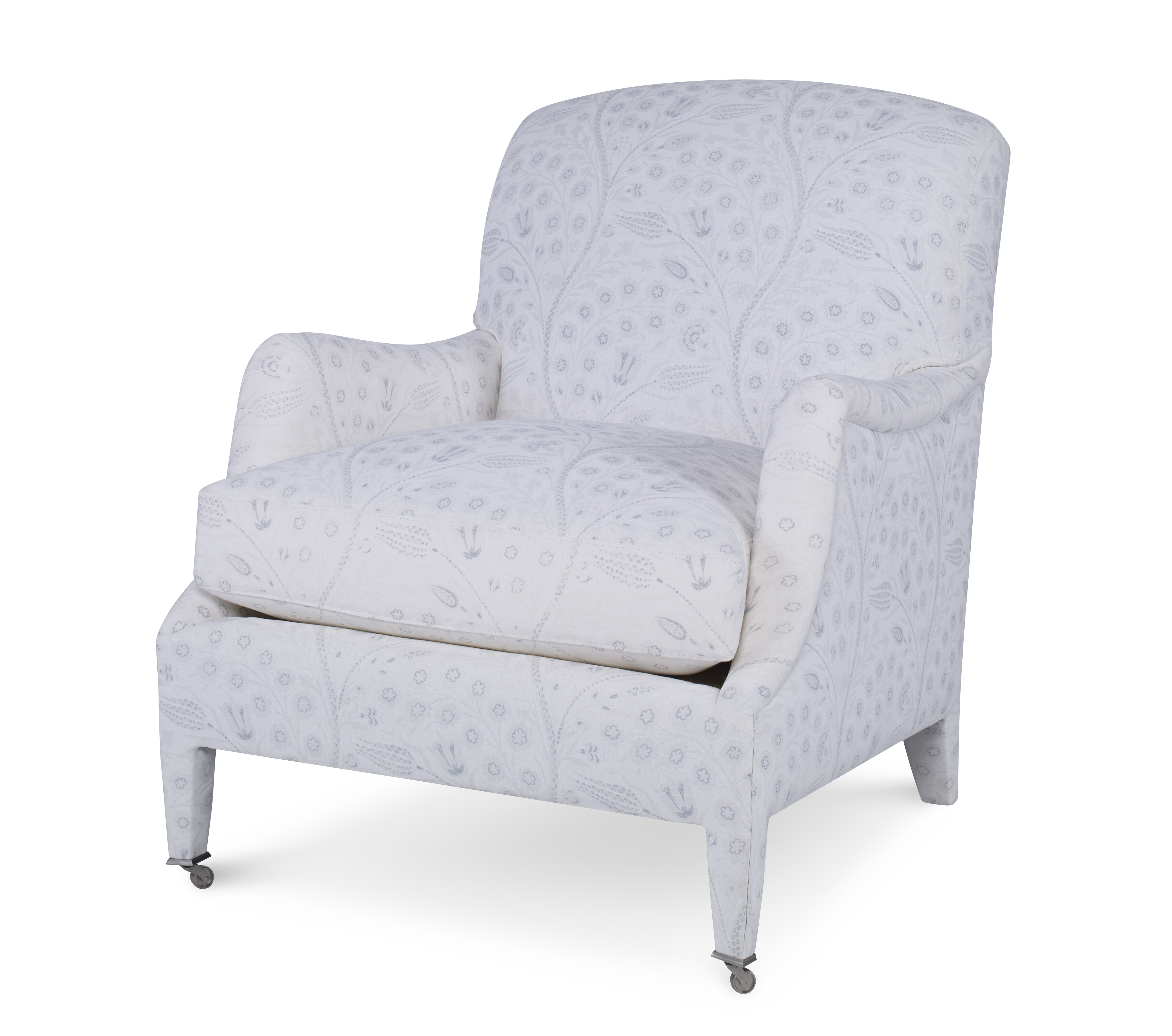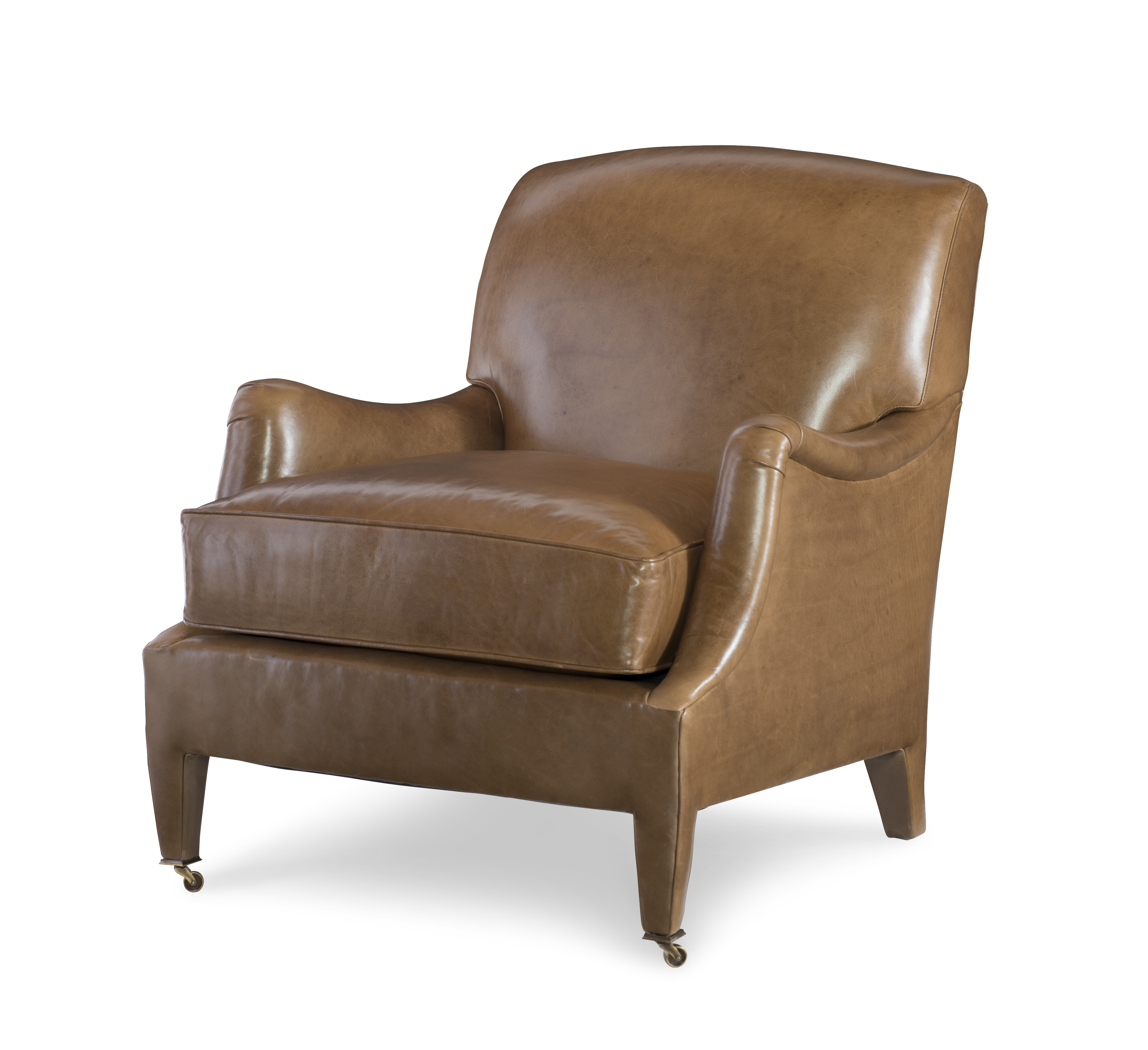 Standard with Antique Brass Casters and OPT Satin Nickel Casters Top Stitch Standard on cushions. |