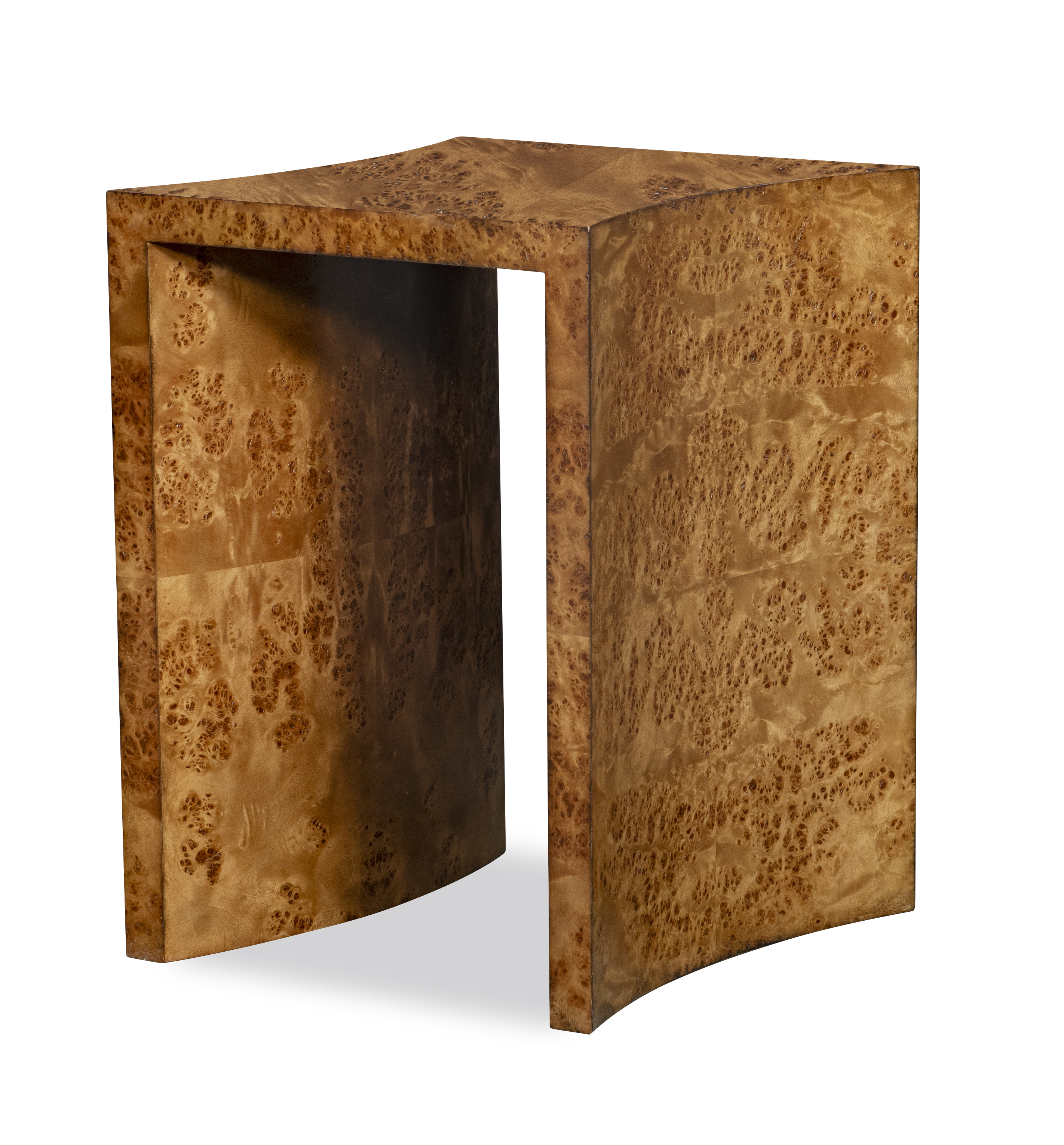 (View As Shown Info) Some color variation in photos of our furniture finishes and fabrics is possible due to the lighting and different color resolution on computer monitors. HH26-130-2 - Farrow Burl Side Table Highland House Wood W: 18 in D: 18 in H: 24 in Add Item to Wishlist Product Details Material Mappa Burl Veneers Dimensions Finishes Finish List Dealer Locator