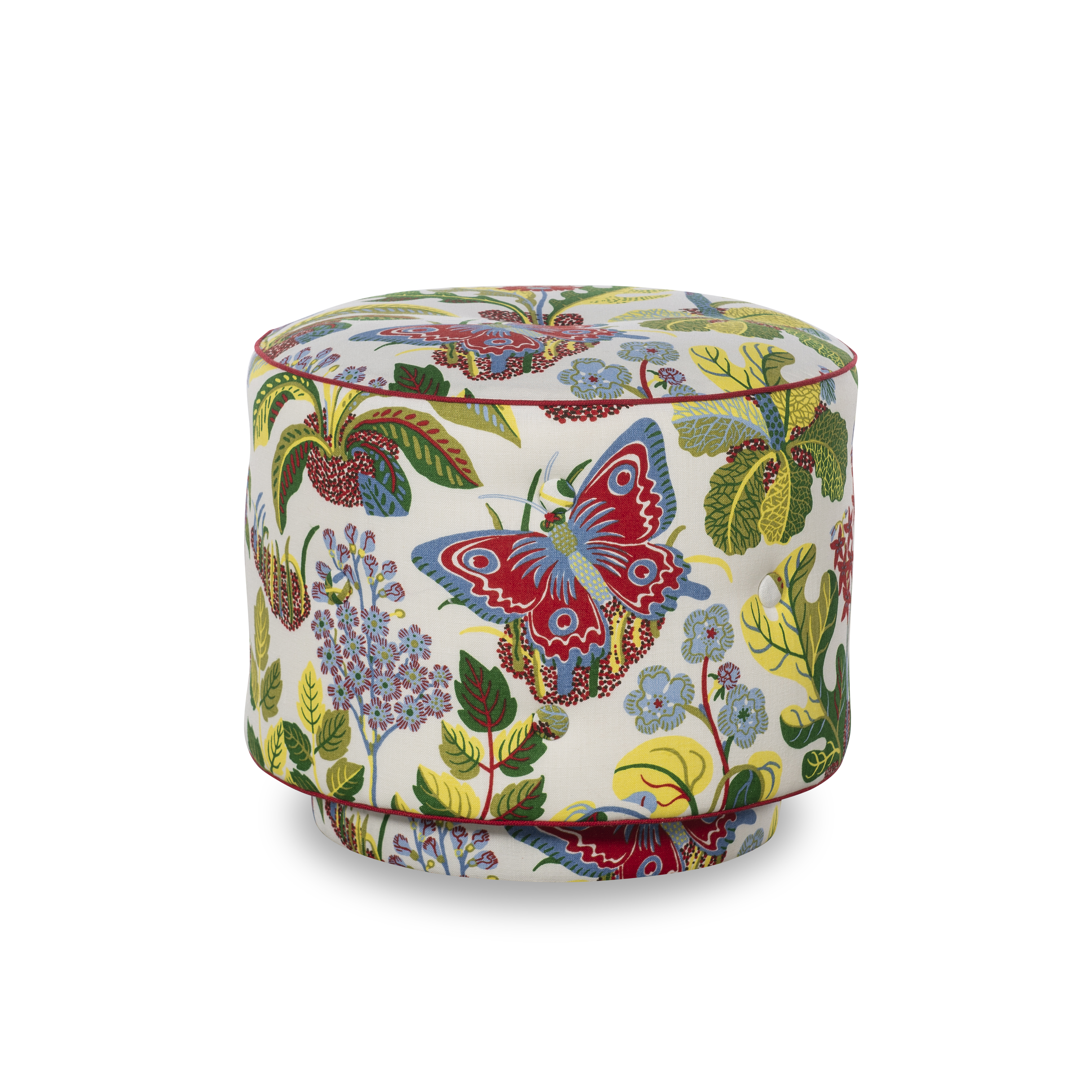 A swivel ottoman to pair with our Mary Jane Chairs or to be used as pull up seating.
