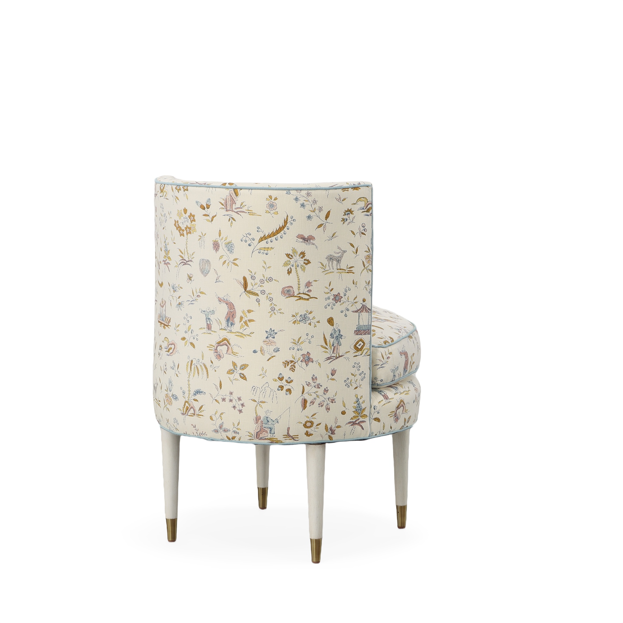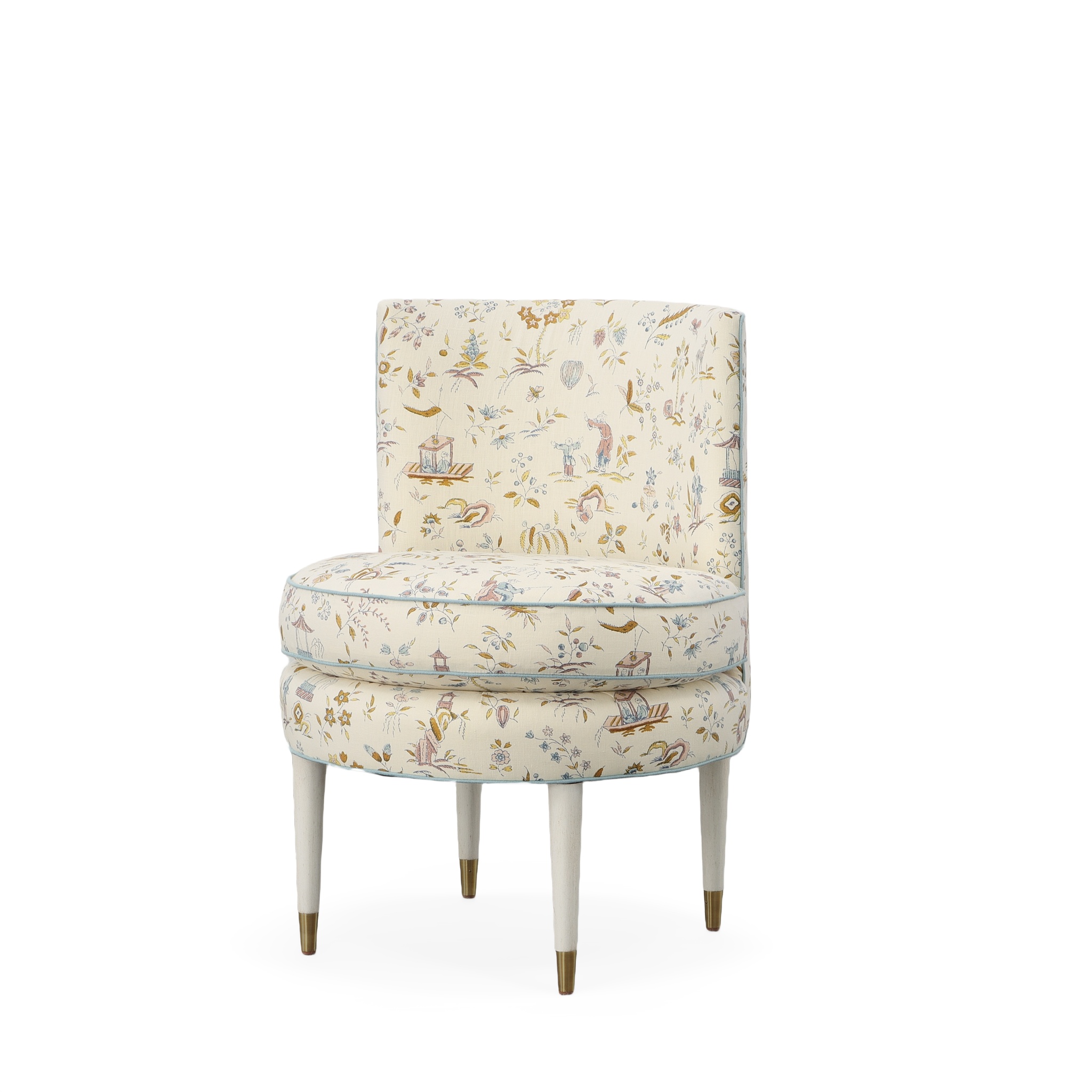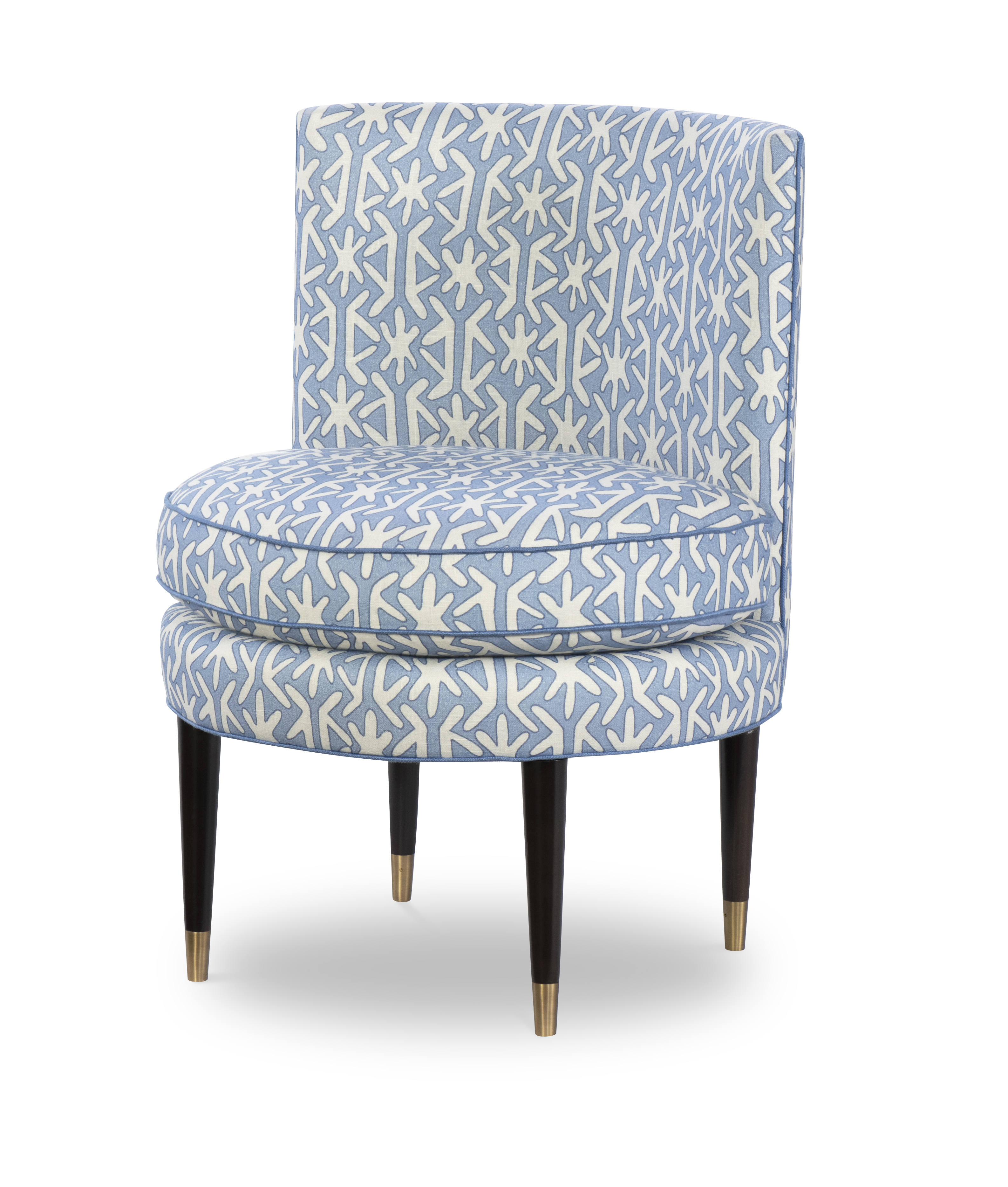 (View As Shown Info) Some color variation in photos of our furniture finishes and fabrics is possible due to the lighting and different color resolution on computer monitors. 1431 - Weldon Accent Chair W: 24 in D: 24 in H: 32.50 in Add Item to Wishlist Product Details Material Maple Solids Back Type Tight Seat Type Loose Seat Fill Ultra Down Notes Standard with Welt on Out Back and Base and Topstitch on Seat Cushion. Standard with Antique Brass Ferrules and OPT Brushed Nickel Ferrules Dimensions Fabrics & Finishes Fabric Search Finish List Dealer Locator