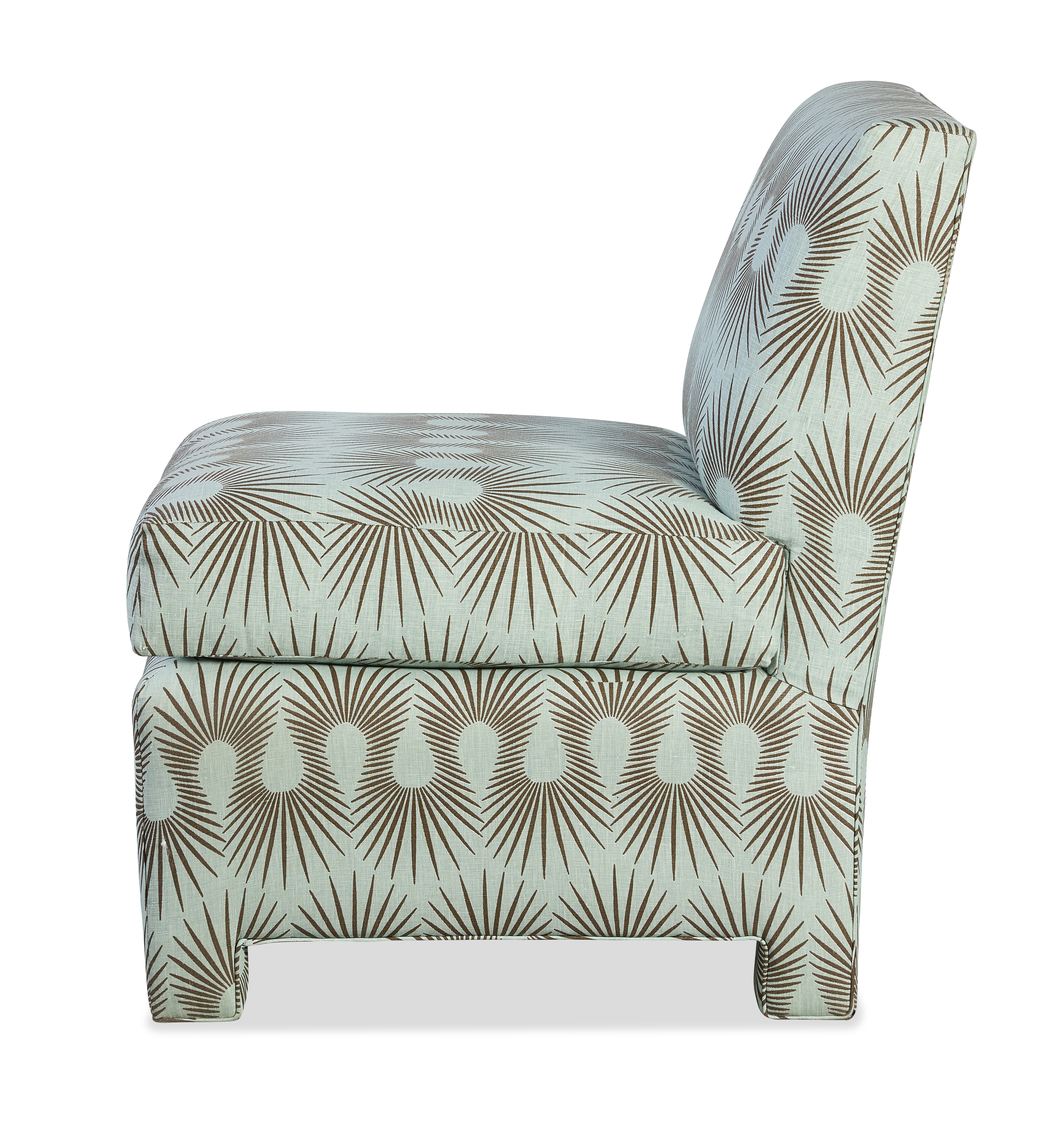 (View As Shown Info) Some color variation in photos of our furniture finishes and fabrics is possible due to the lighting and different color resolution on computer monitors. 1504 - Whitby Slipper Chair W: 21 in D: 29.50 in H: 32 in Add Item to Wishlist Product Details Material Maple Solids Back Type Tight Seat Type Loose Seat Fill Ultra Down Notes Standard with Micro Welt on Out-Back and Base. Nail Trim optional on Base. Dimensions Fabrics Fabric Search Dealer Locator