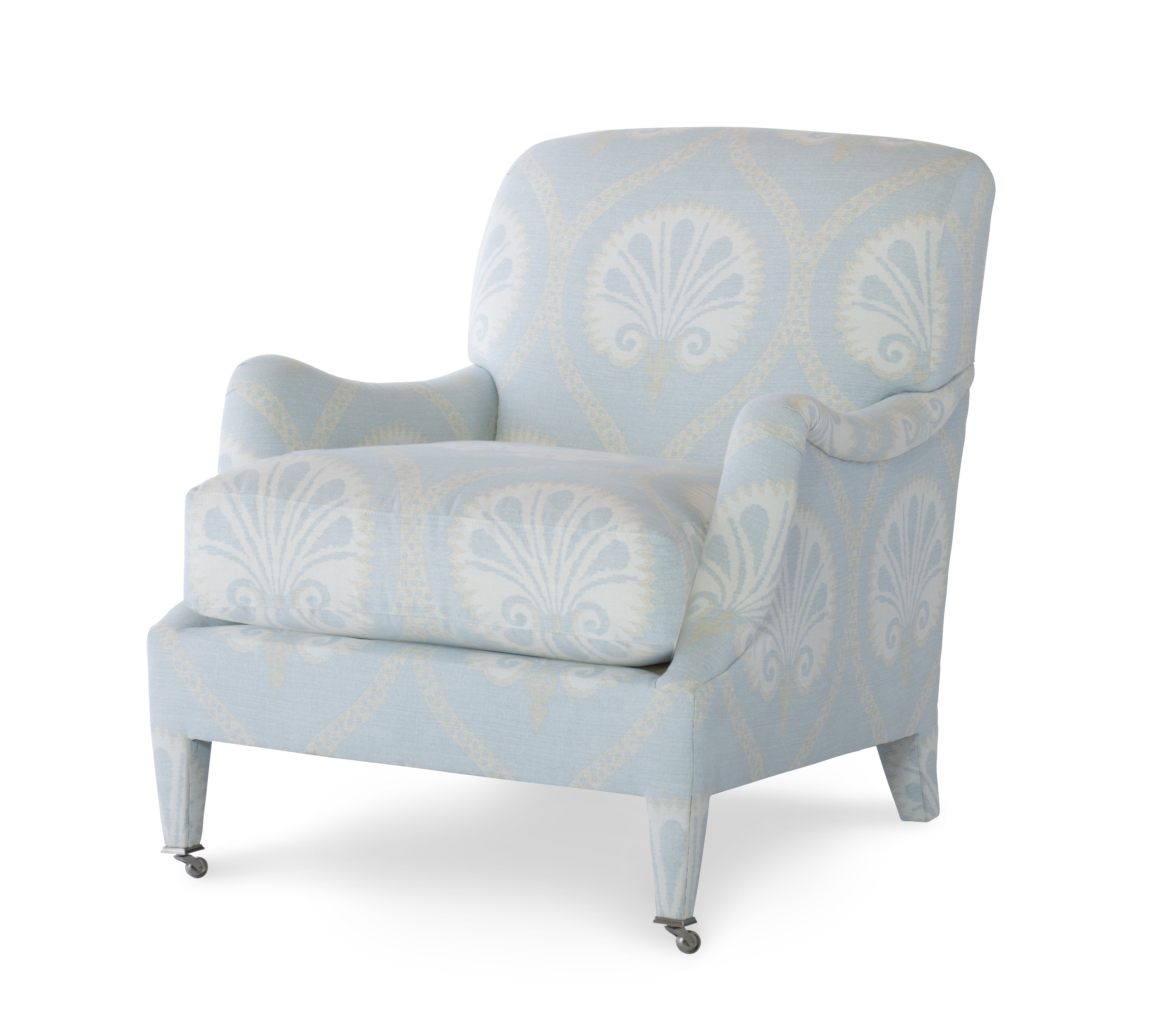 Standard with Antique Brass Casters and OPT Satin Nickel Casters Top Stitch Standard on cushions. |