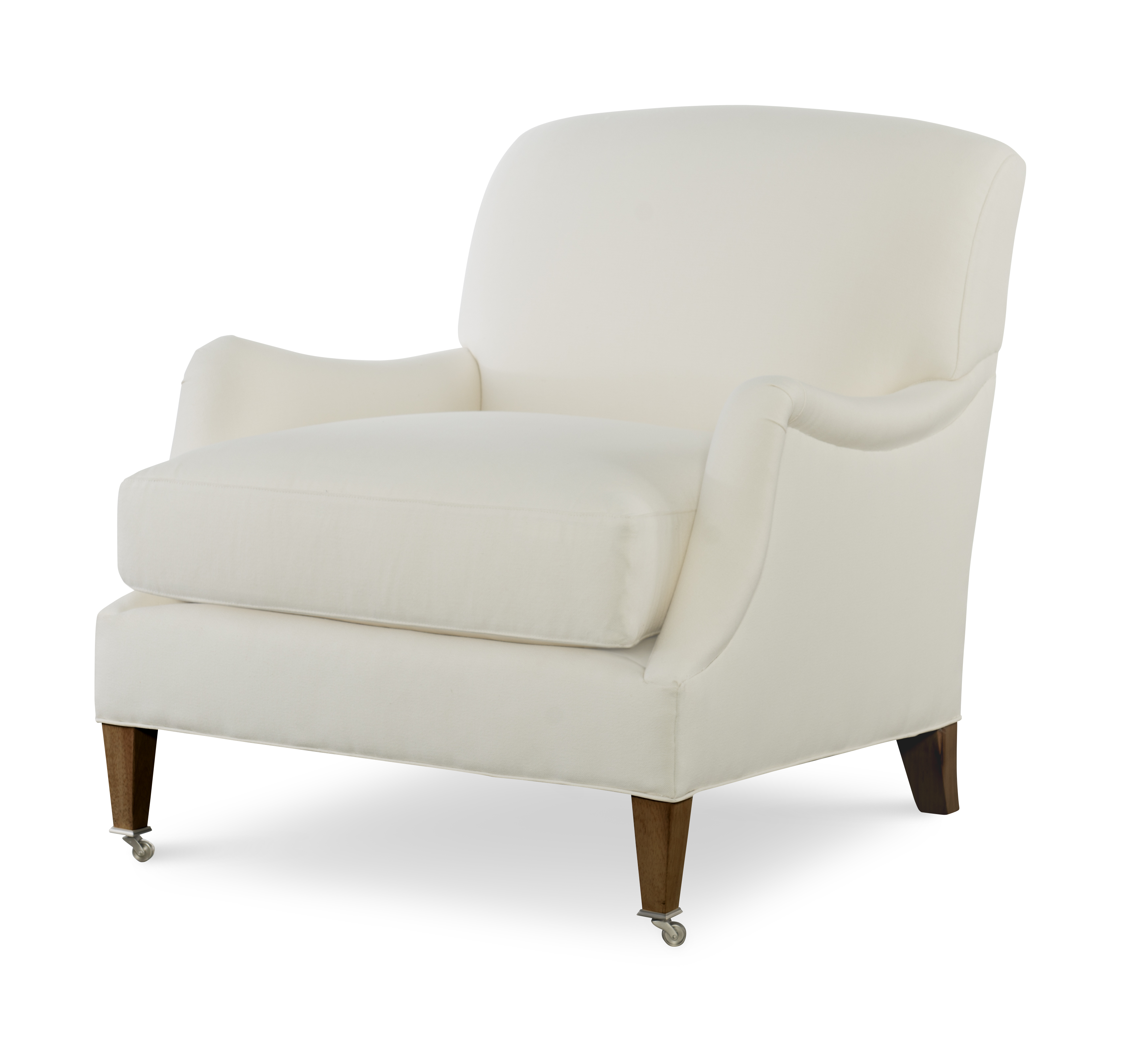 (View As Shown Info) Some color variation in photos of our furniture finishes and fabrics is possible due to the lighting and different color resolution on computer monitors. 1555 - Dorset Chair Highland House Uph W: 32.50 in D: 38 in H: 34 in The silhouette of the frame was inspired by an English Antique. We modified the shape of the traditional English arm to give the piece a more modern sensibility. Standard with Topstitch on Cushions and In-Back. No Welt. Standard Antique Brass Casters and OPT Satin Nickel Casters Add Item to Wishlist Product Details Material Maple Solids Back Type Tight Seat Type Loose Seat Fill Ultra Down Certifications Notes Standard with Topstitch on Cushions and In-Back. No Welt. Standard Antique Brass Casters and OPT Satin Nickel Casters Dimensions Fabrics & Finishes Fabric Search Finish List Dealer Locator