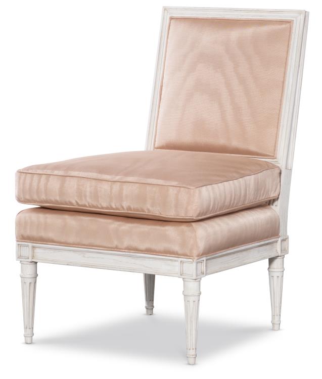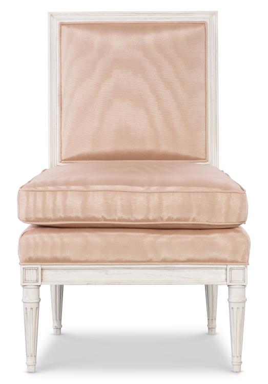 The Ella Slipper Chair was inspired by a French antique. The carved frame is made of white oak and can be finished in any Highland House stain or paint as well as any Benjamin Moore or Sherwin Williams paint. This classic slipper chair is a perfect accent for any room.