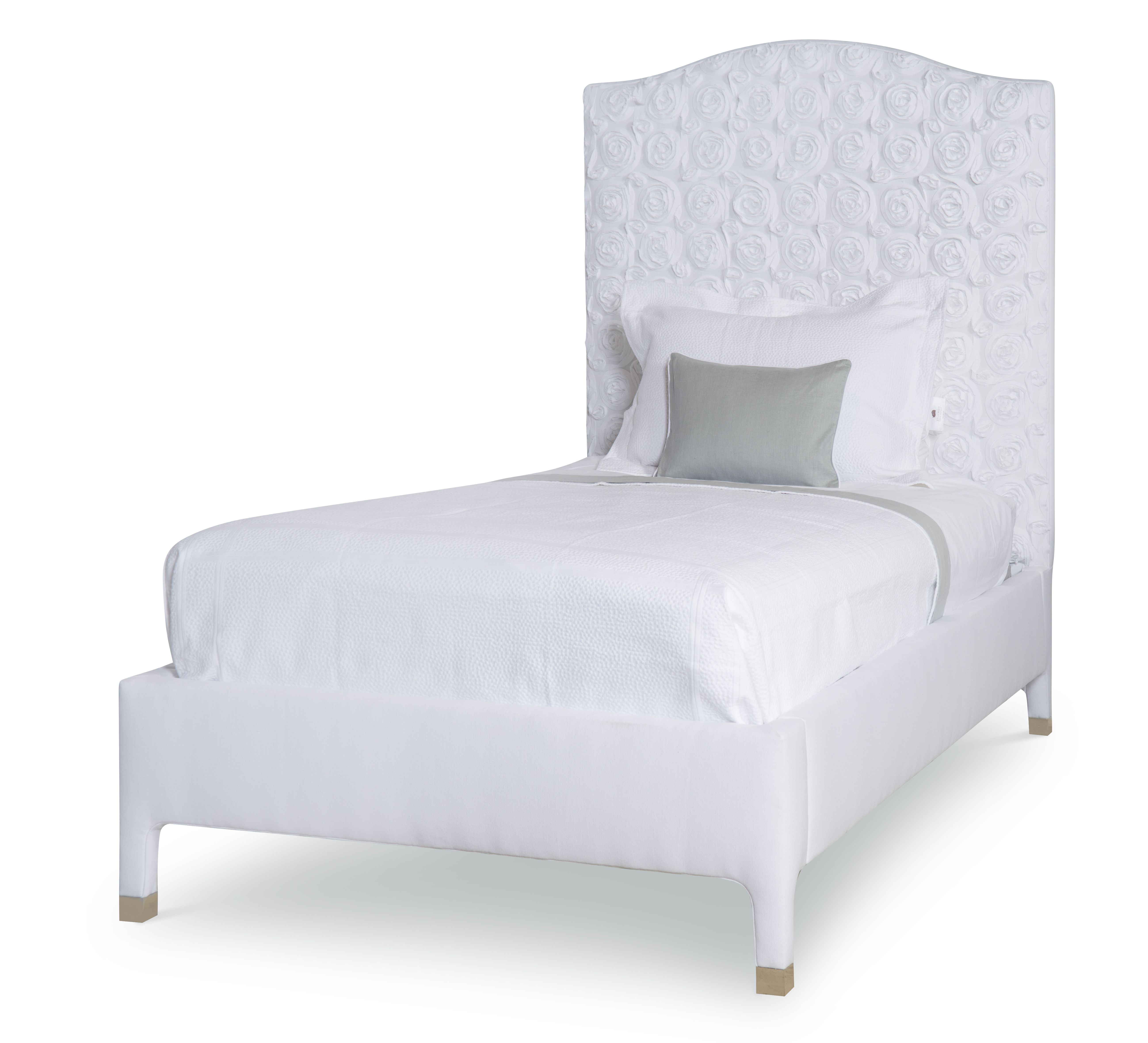 (View As Shown Info) Some color variation in photos of our furniture finishes and fabrics is possible due to the lighting and different color resolution on computer monitors. 5026T - Mia Twin Upholstered Bed W: 45 in D: 82 in H: 63 in Add Item to Wishlist Product Details Notes Standard Topstitch. Ferrule available in Antique Brass and Antique Silver Dimensions Fabrics Fabric Search Dealer Locator