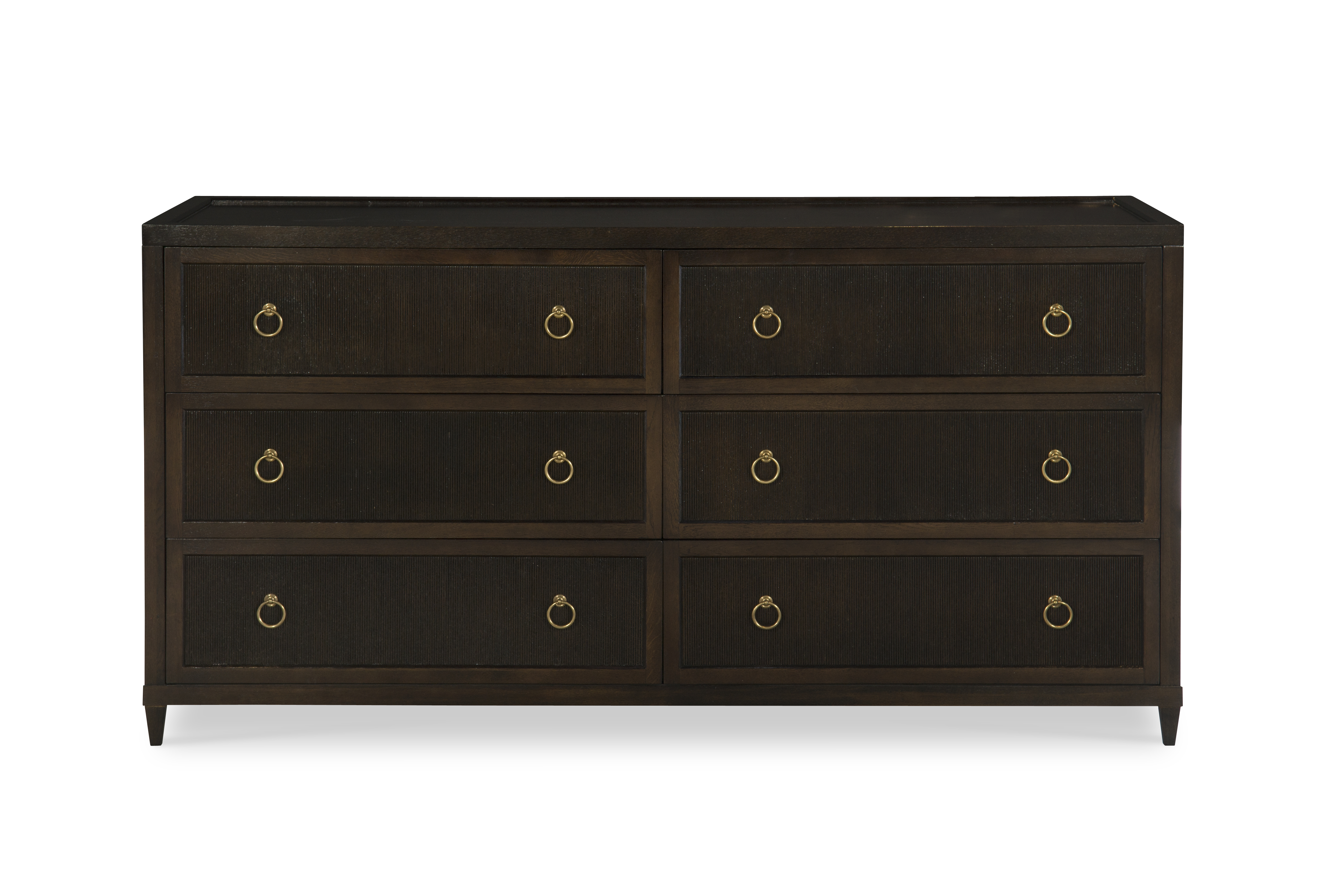 (View As Shown Info) Some color variation in photos of our furniture finishes and fabrics is possible due to the lighting and different color resolution on computer monitors. HH19-712 - Luca Double Dresser Highland House Wood W: 70.25 in D: 22.50 in H: 36 in Add Item to Wishlist Product Details Material Oak Veneers, Oak Solids Notes Standard Antique Brass Hardware and OPT Polished Nickel Hardware. Dimensions Finishes Finish List Dealer Locator