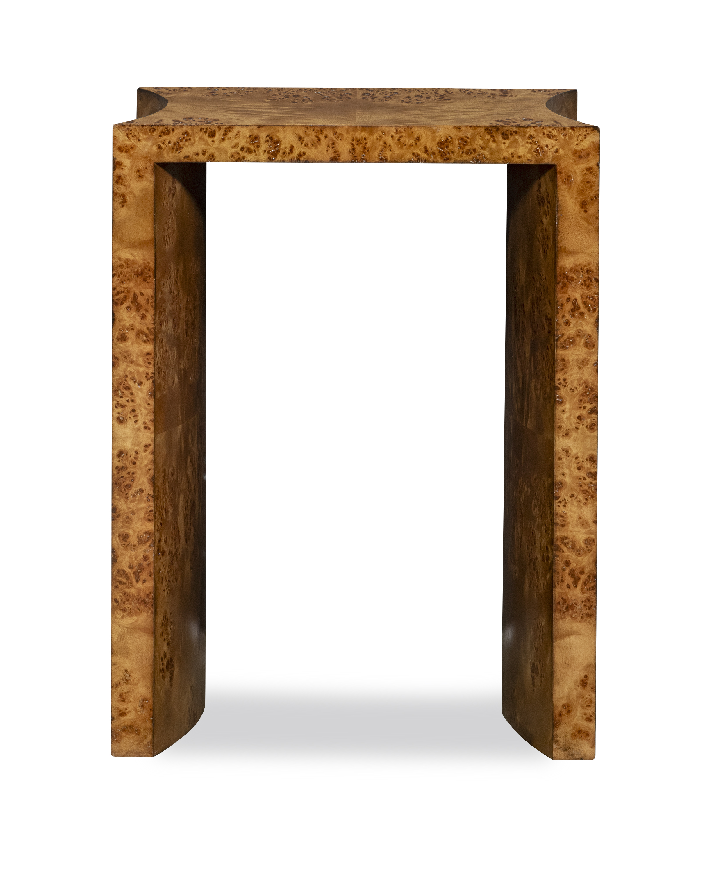(View As Shown Info) Some color variation in photos of our furniture finishes and fabrics is possible due to the lighting and different color resolution on computer monitors. HH26-130-2 - Farrow Burl Side Table Highland House Wood W: 18 in D: 18 in H: 24 in Add Item to Wishlist Product Details Material Mappa Burl Veneers Dimensions Finishes Finish List Dealer Locator