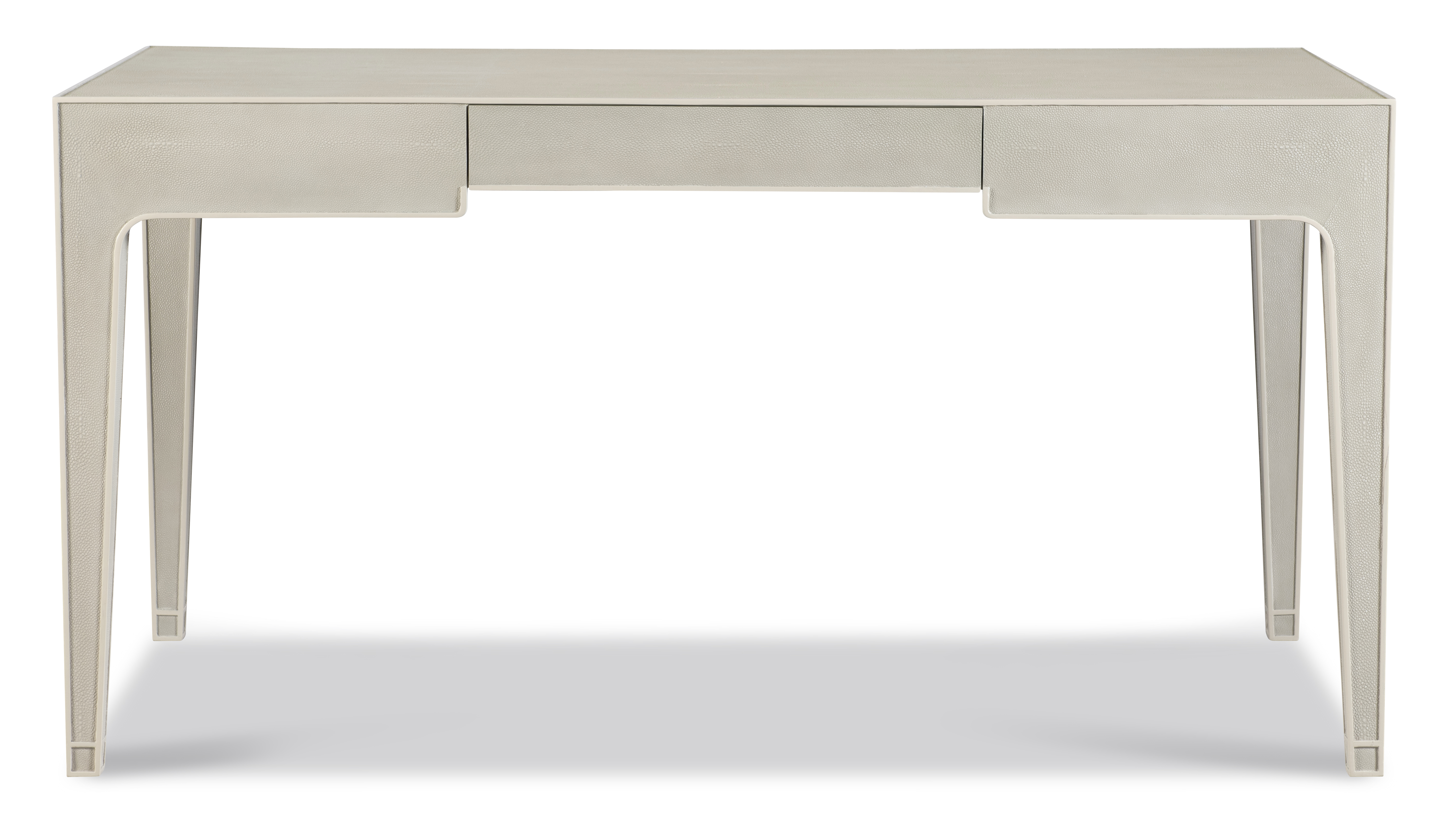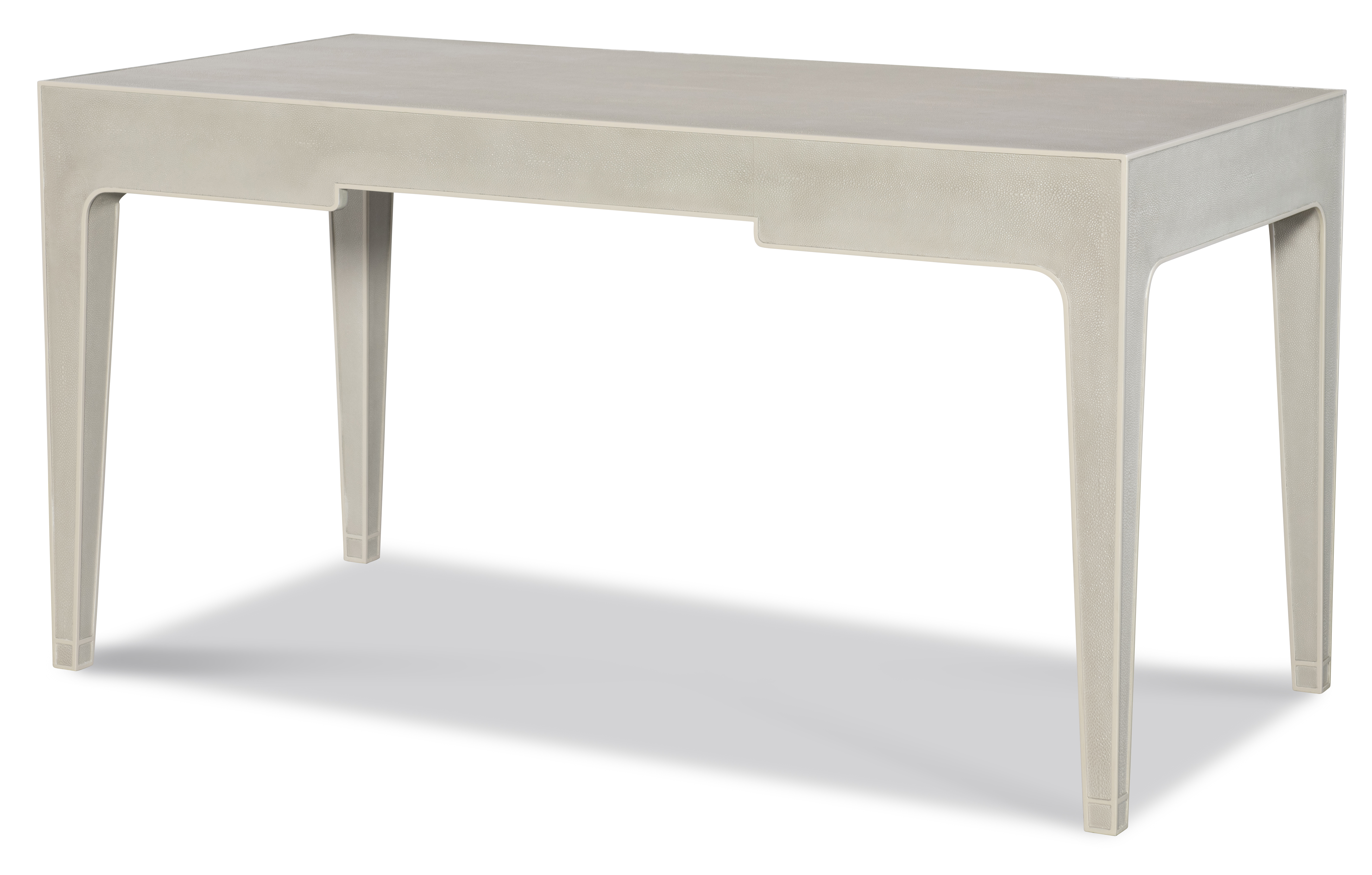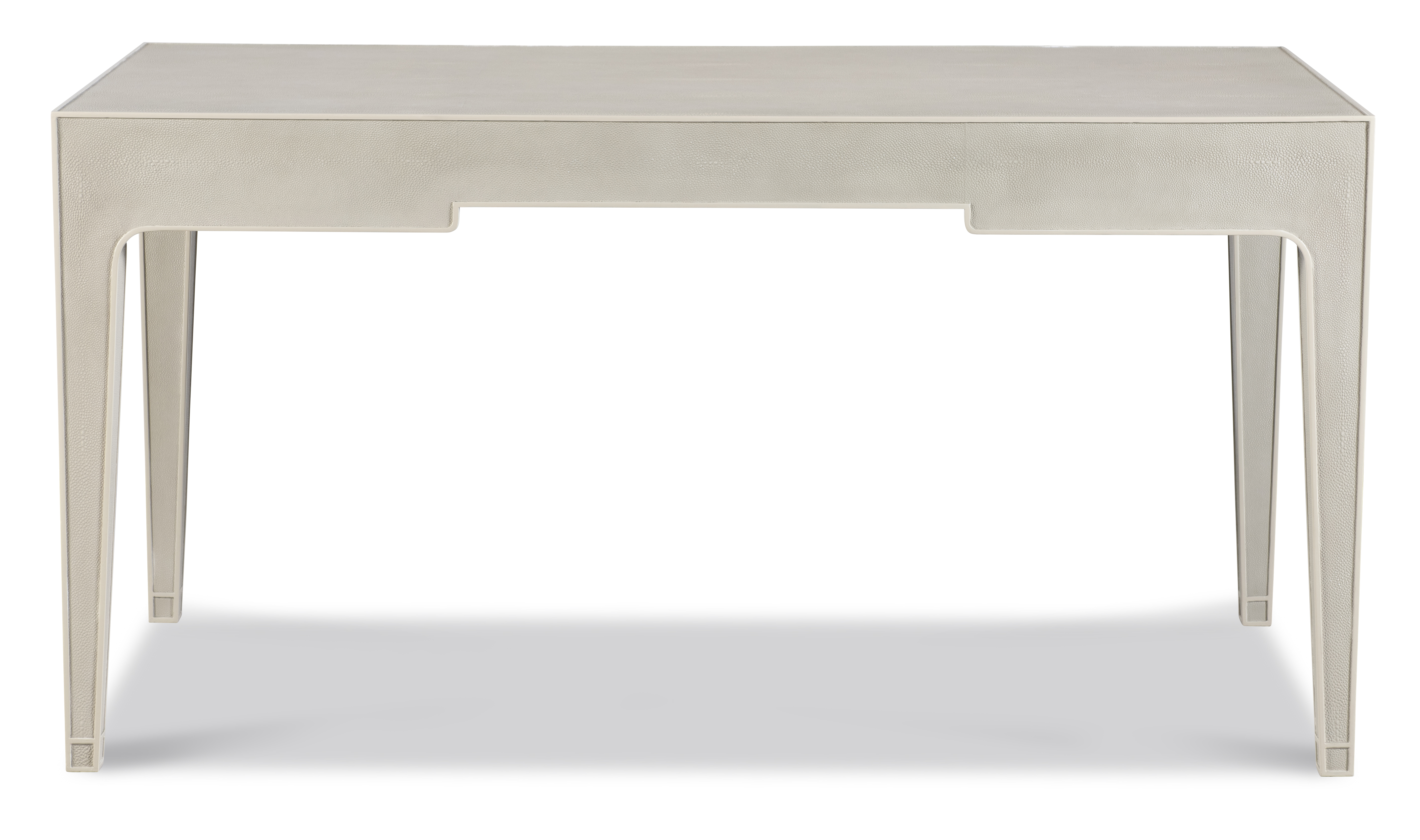 (View As Shown Info) Some color variation in photos of our furniture finishes and fabrics is possible due to the lighting and different color resolution on computer monitors. HH26-530-AS - Emmett Cream Shagreen Desk Highland House Wood W: 62 in D: 28 in H: 30 in Add Item to Wishlist Product Details Material Faux Shagreen Dimensions Dealer Locator