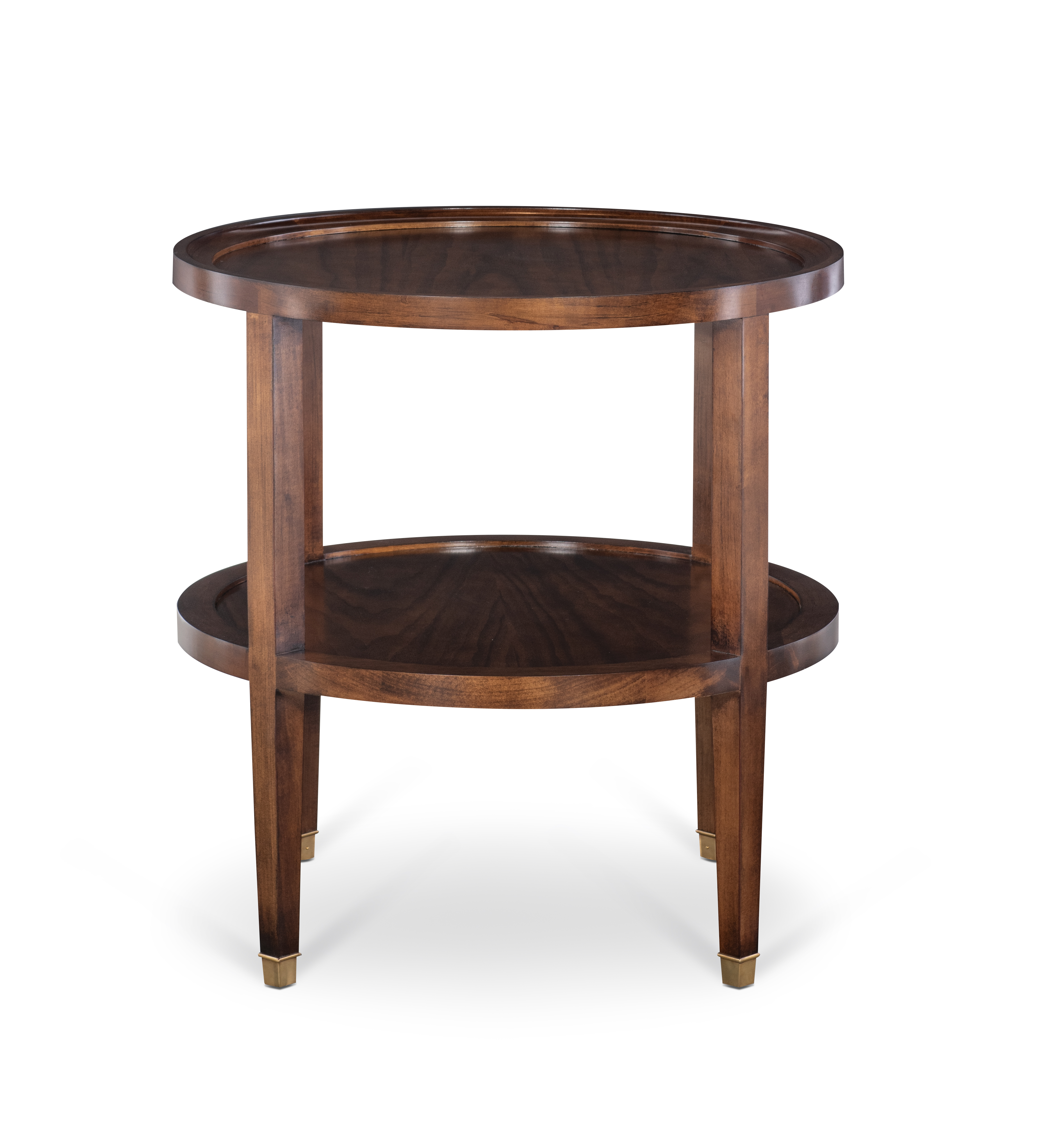 (View As Shown Info) Some color variation in photos of our furniture finishes and fabrics is possible due to the lighting and different color resolution on computer monitors. HH19-876R-1 - Curren Round Side Table - Ferrules Highland House Wood W: 26 in D: 26 in H: 27 in Add Item to Wishlist Product Details Material Walnut Veneers, Maple Solids Notes Standard with Antique Brass and OPT Antique Silver Ferrules Dimensions Finishes Finish List Matching Pieces HH19-876 Curren Square Cocktail Table - Casters Dealer Locator